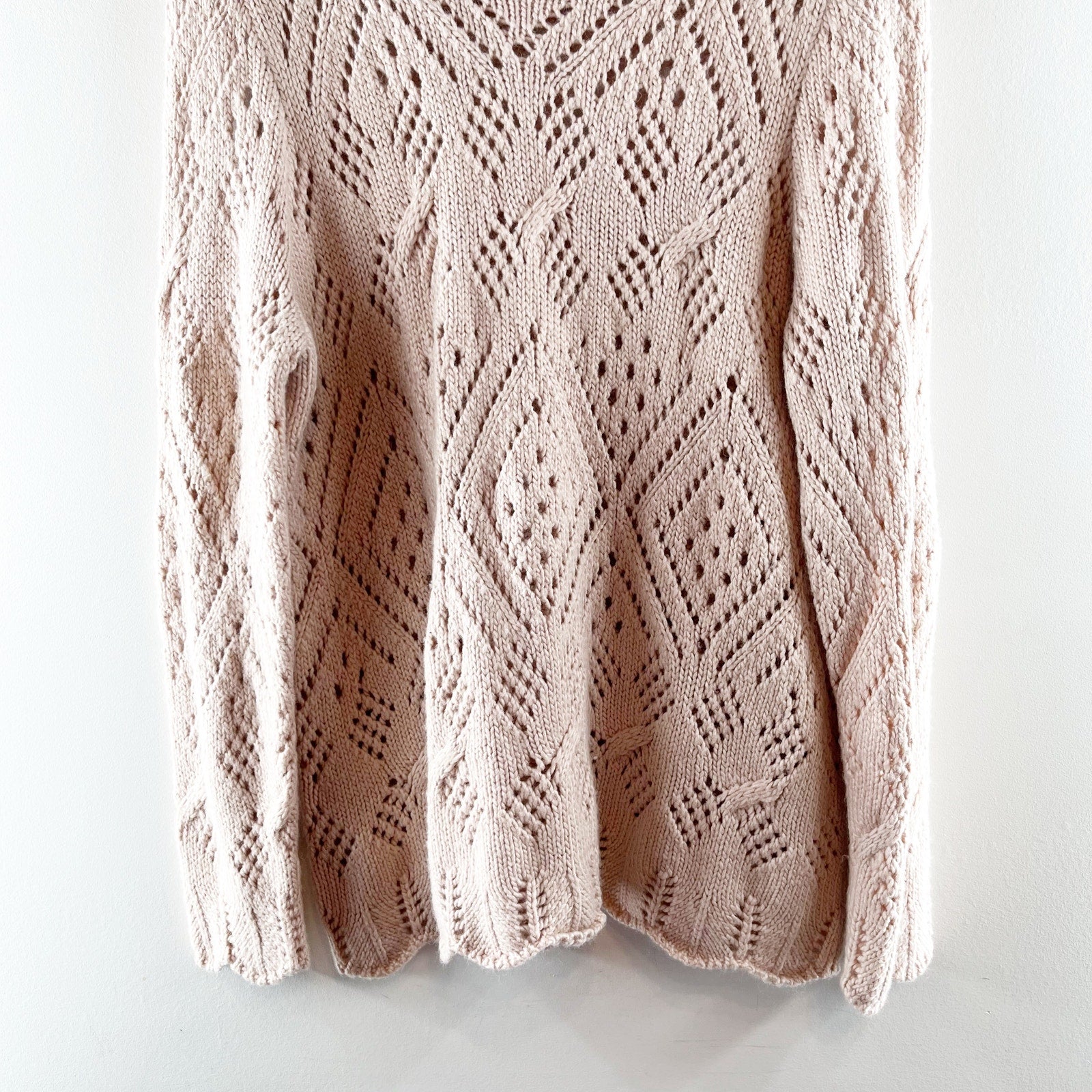 LOFT Pointelle Knit Long Sleeve Crewneck Sweater Pink XL