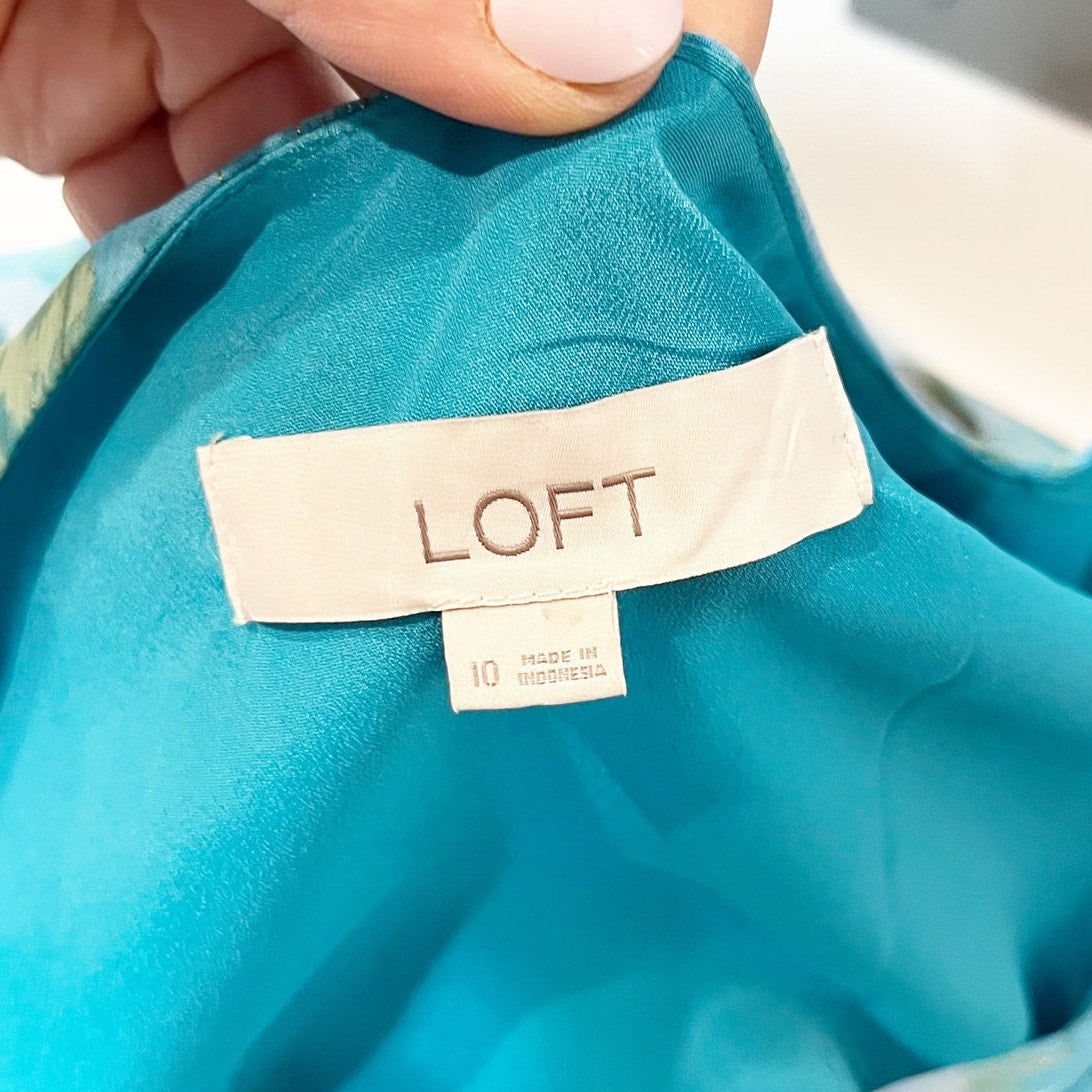 Loft Watercolor Floral Chiffon Puff Long Sleeve Midi Wrap Dress Blue 10