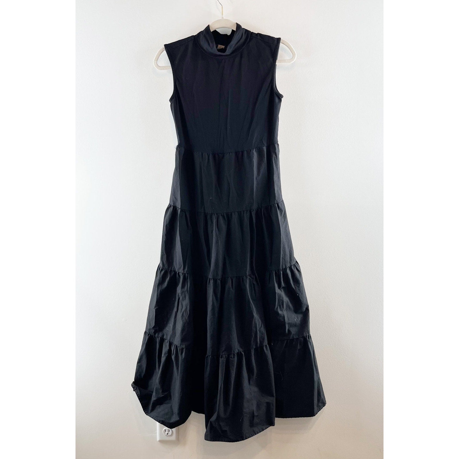 Love X Design Mock Neck Jersey Tiered Poplin Maxi Dress Black Small