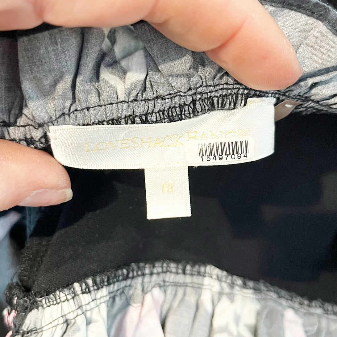LoveShackFancy Sanam Ruffle Tiered Floral Mini Dress Black 10