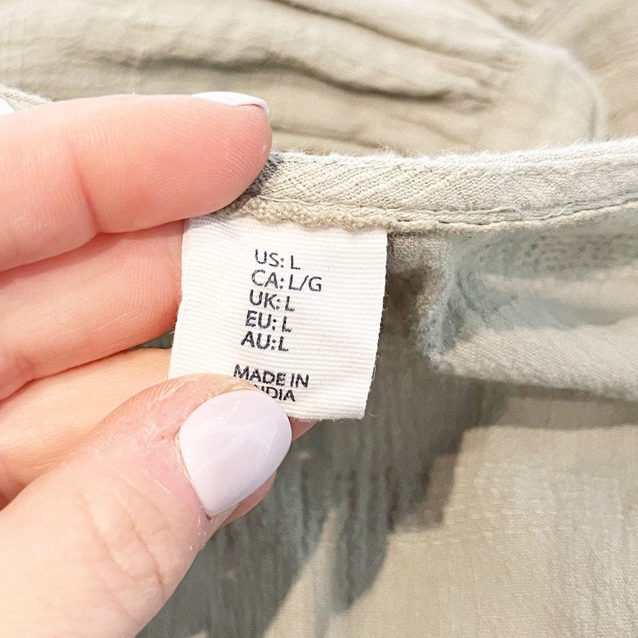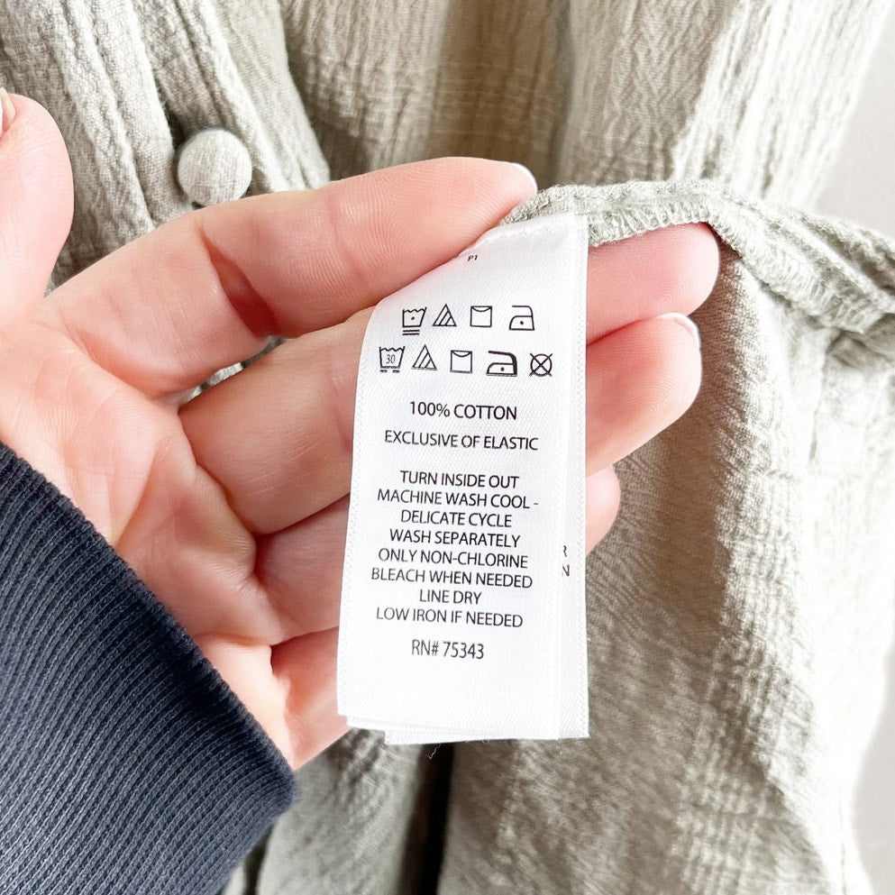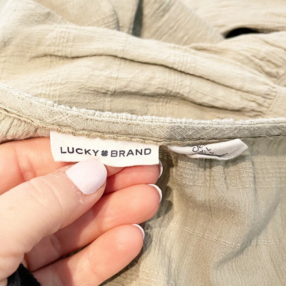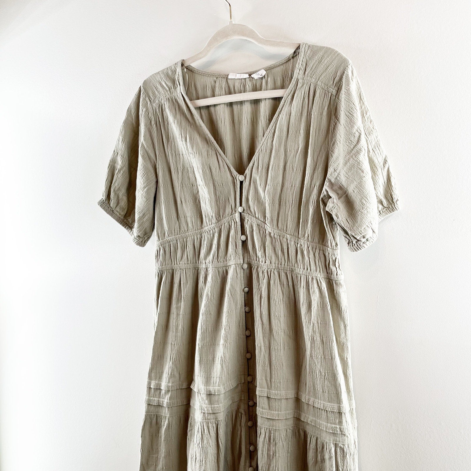 Lucky Brand Cotton Button Up Tiered Short Sleeve Maxi Dress Green Large