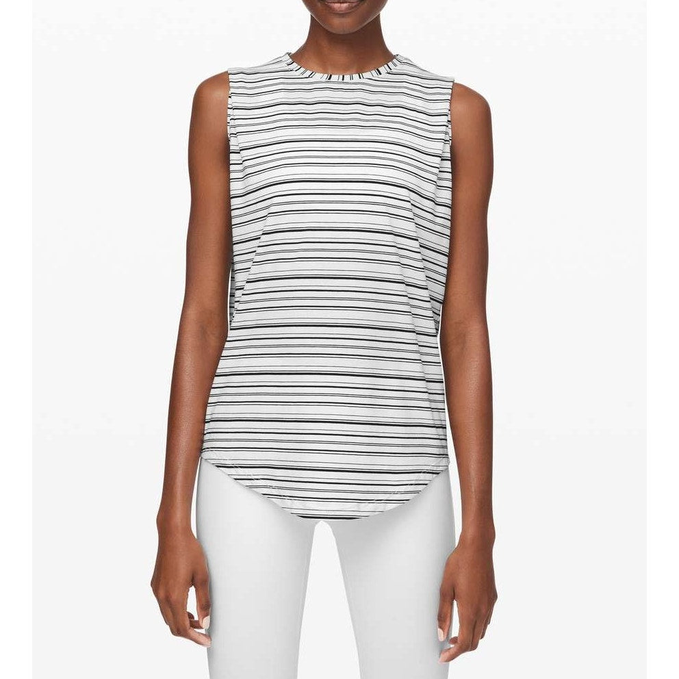 Lululemon Brunswick Muscle Tank Cut Back Stripe White Black Medium