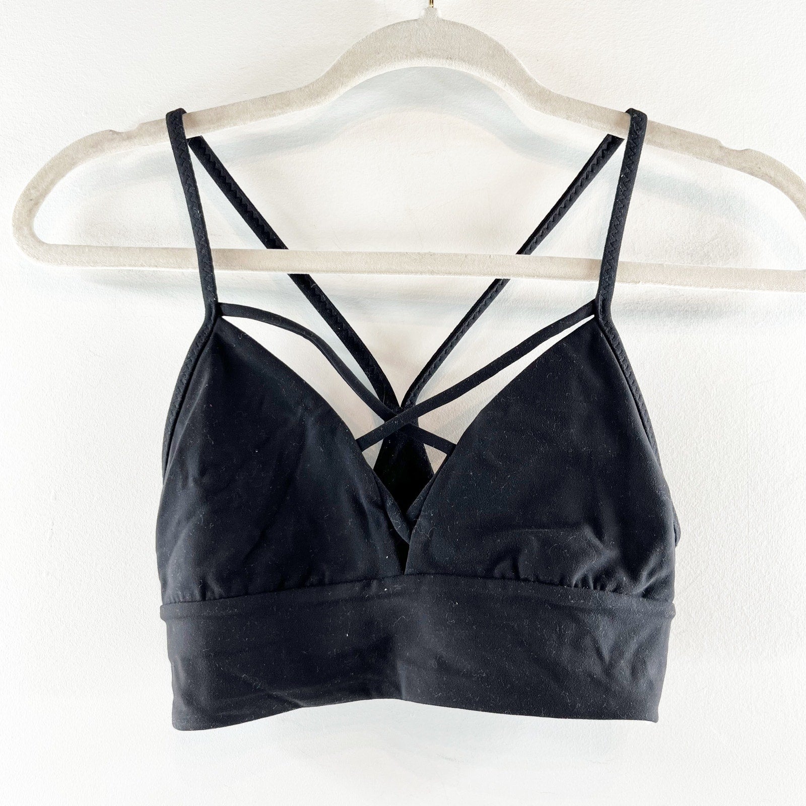 strappy front and back, light support, workout, bralette, triangle, yoga
