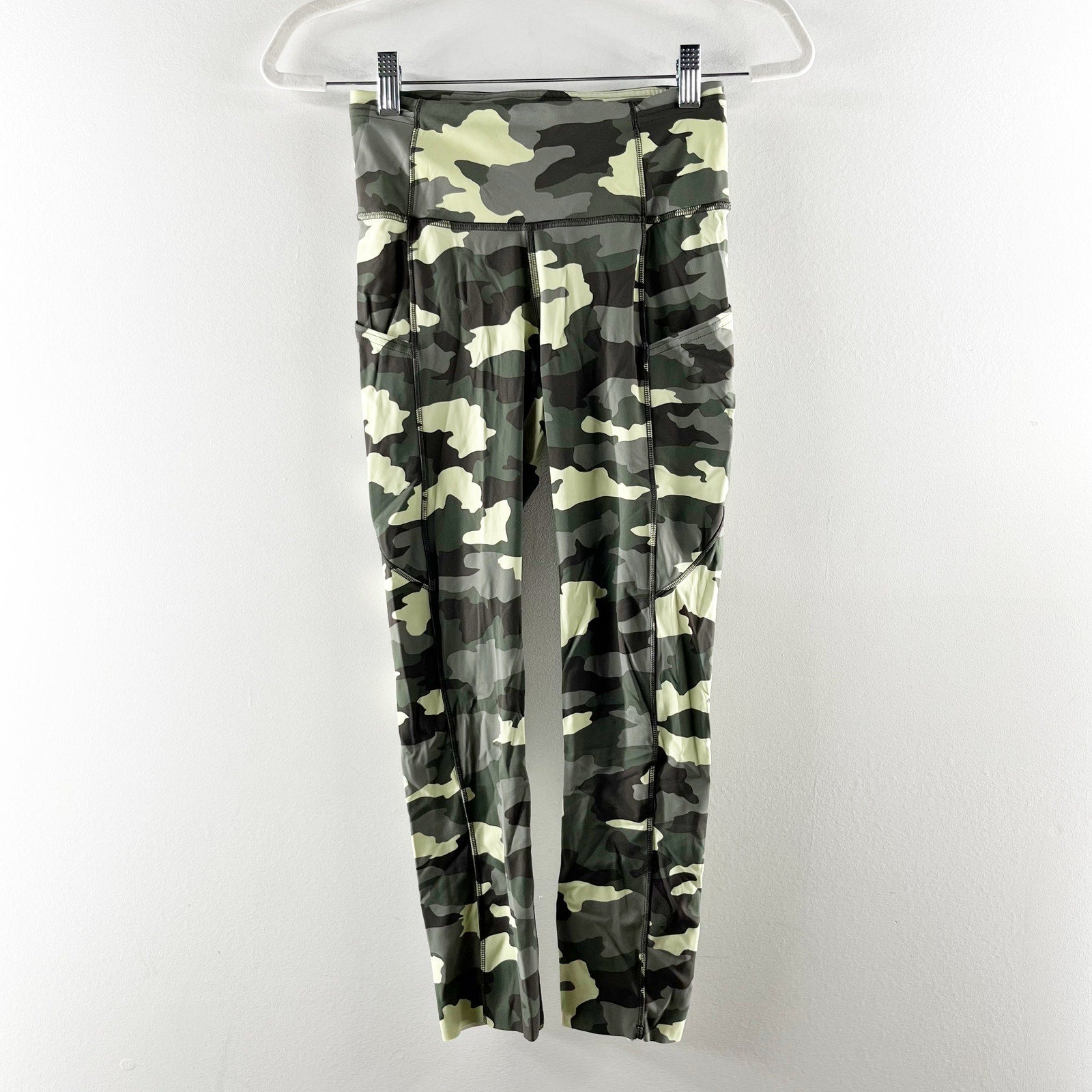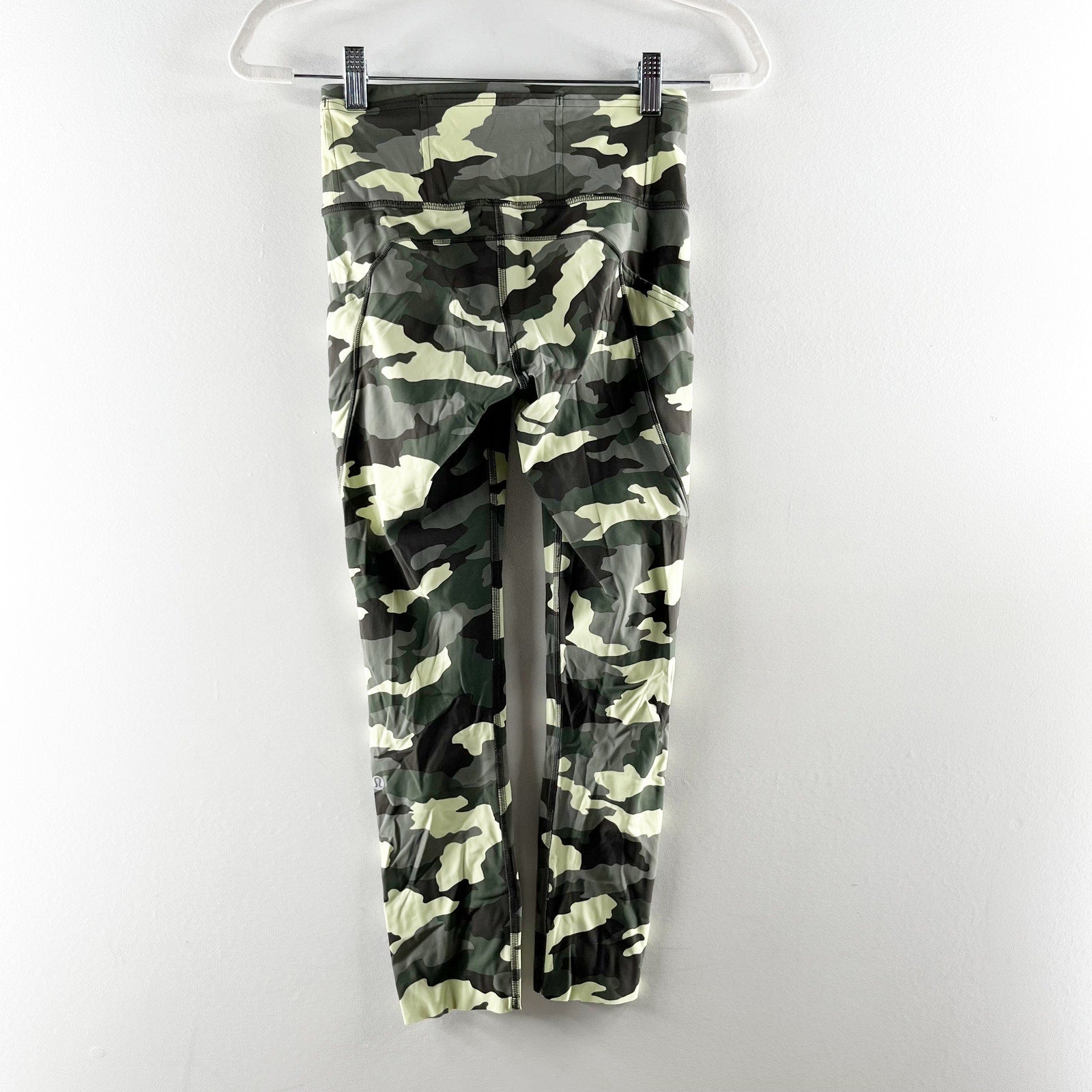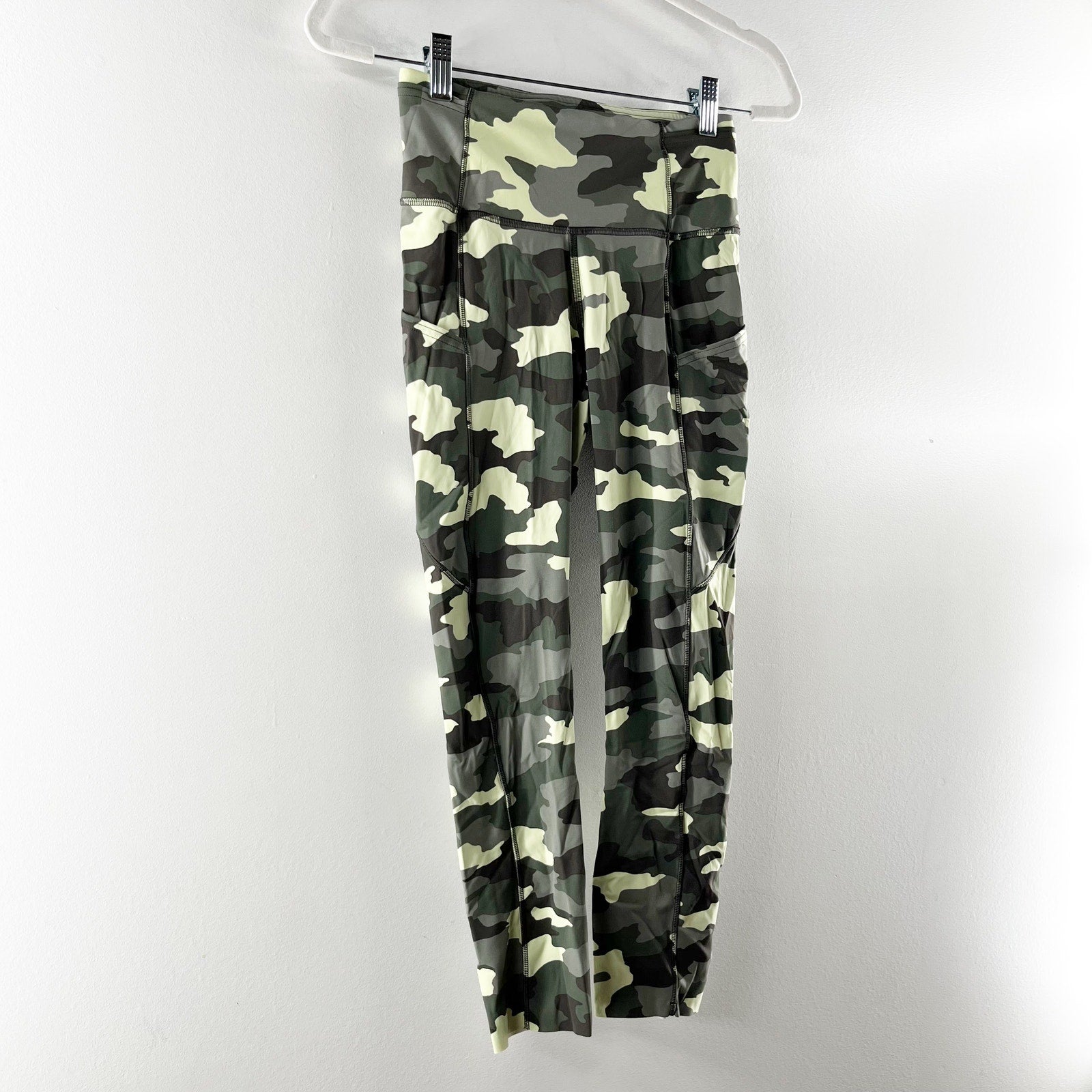 Lululemon Fast and Free High Rise Crop 23" Heritage 365 Camo Crispin Green Multi