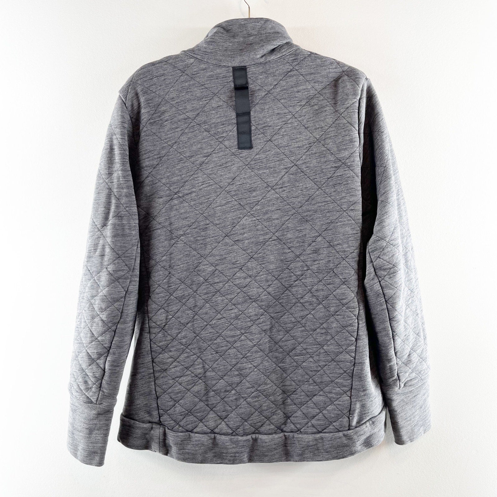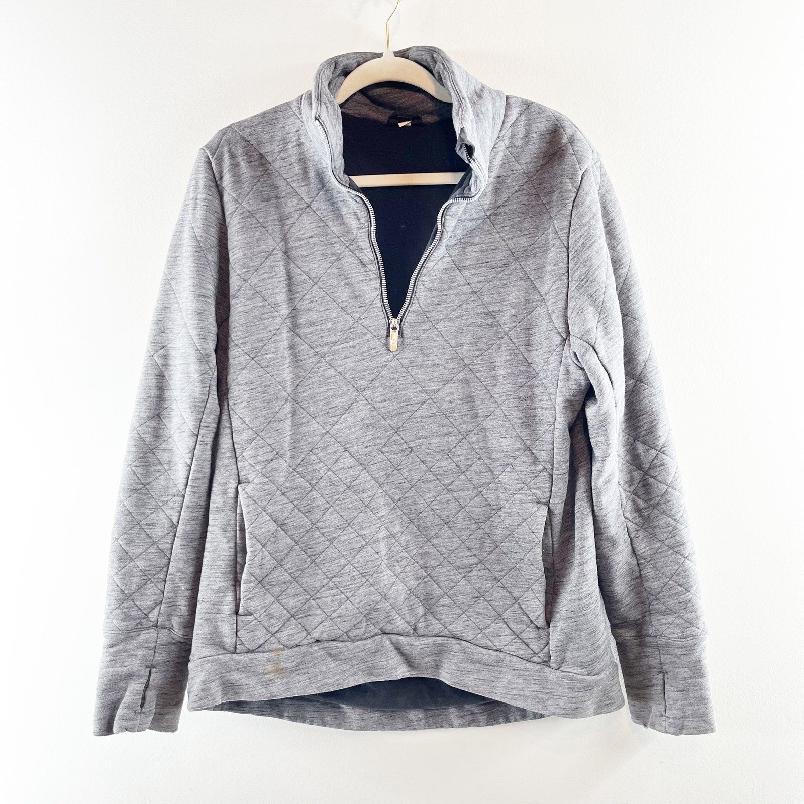 quilted, long sleeve, thubholes, 1/4 zip, gray, side zip pockets, gray, black, sweatshirt, pullover