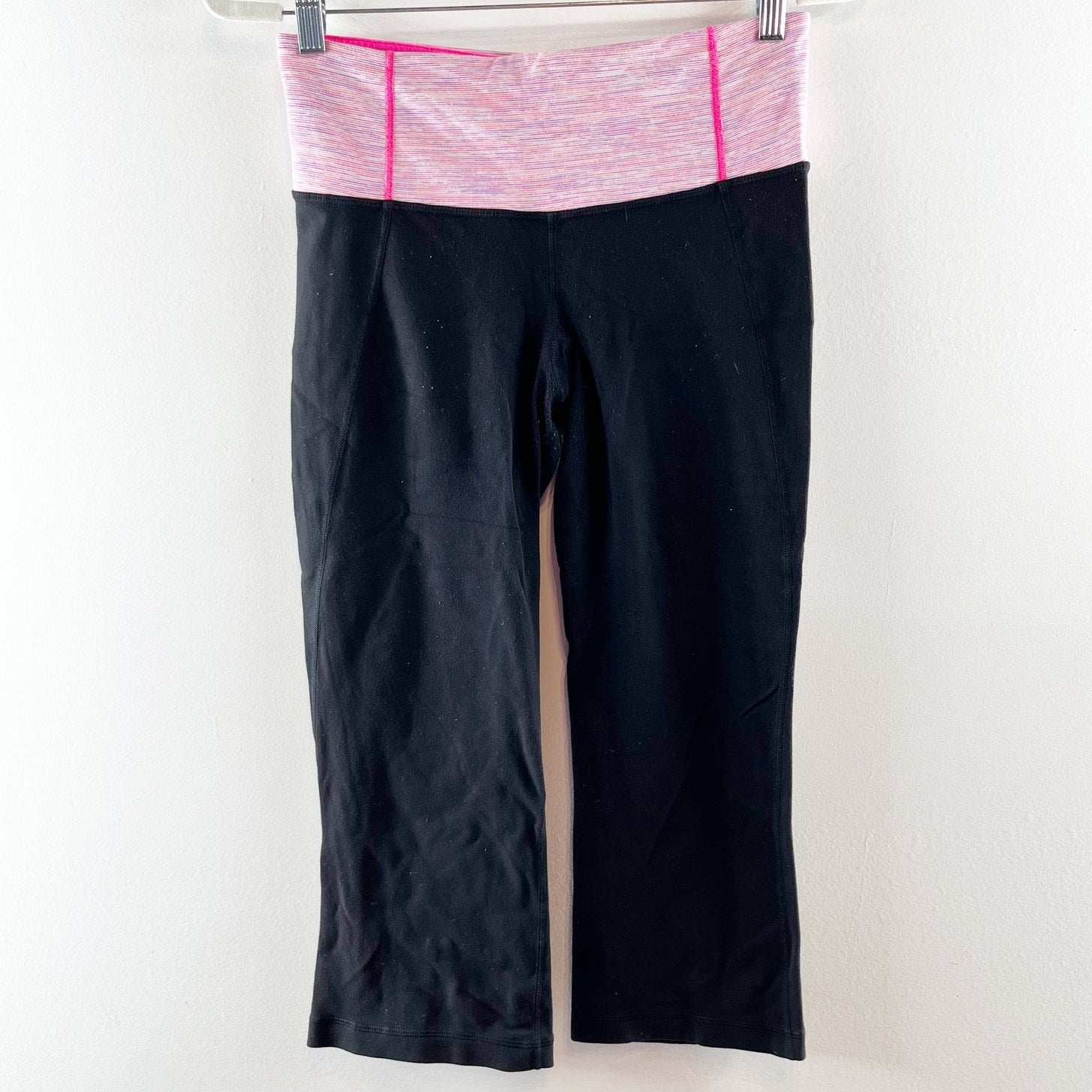 Lululemon Groove Crop Mid Rise Leggings Black Pink 6