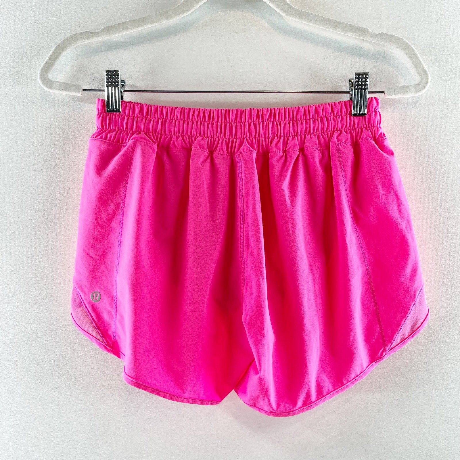 pull on, built in liner, zip pocket, interior drawstring, elastic waist, workout, running, active, shorts, hotty hot, hot pink