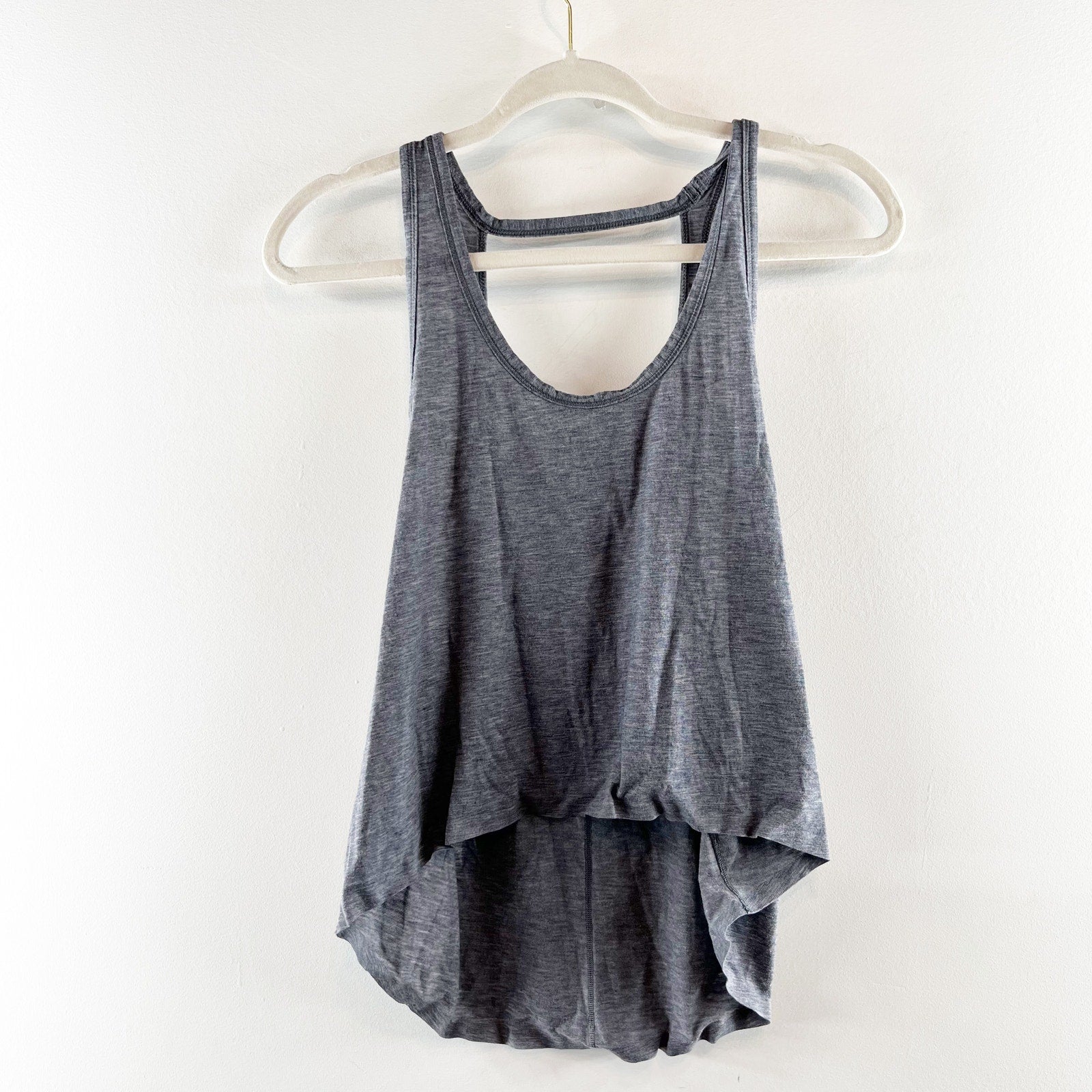 scoopneck, open back, flowy, high low hem, yoga, workout, flowy, tank, sleeveless, gray