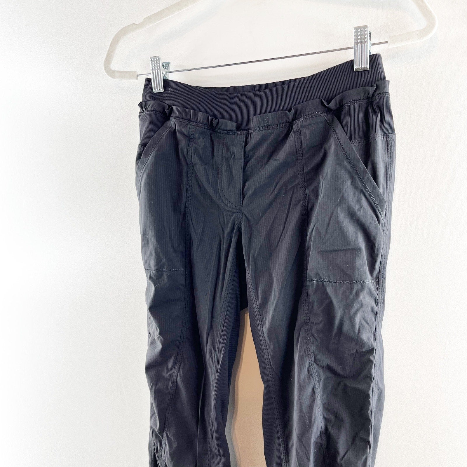 pull on, ribbed waistband, pockets, relaxed fit, straight leg, studio, yoga, workout, lounge