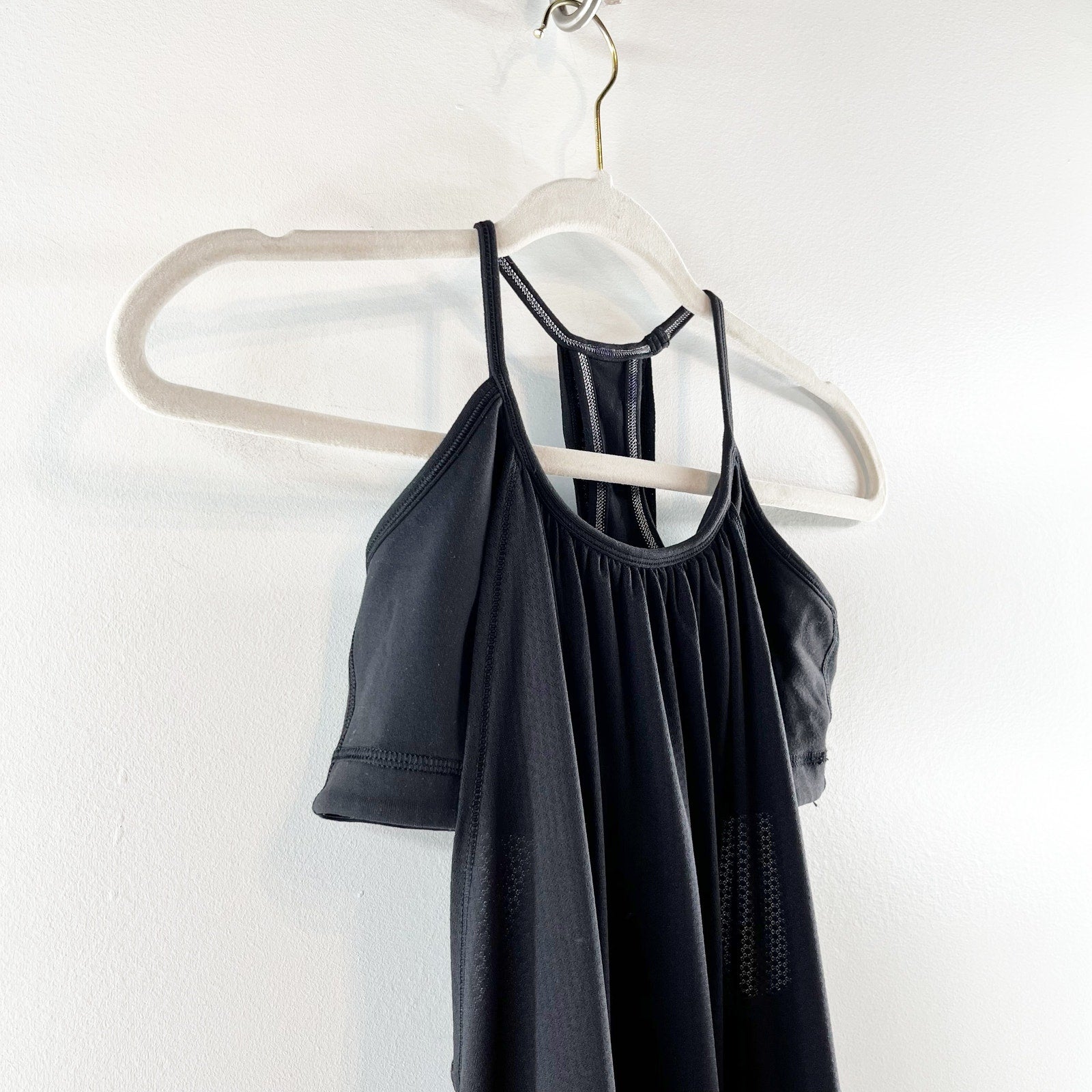 Lululemon No Limits Sleeveless Mesh Long Tank Top with Shelf Bra Black 4