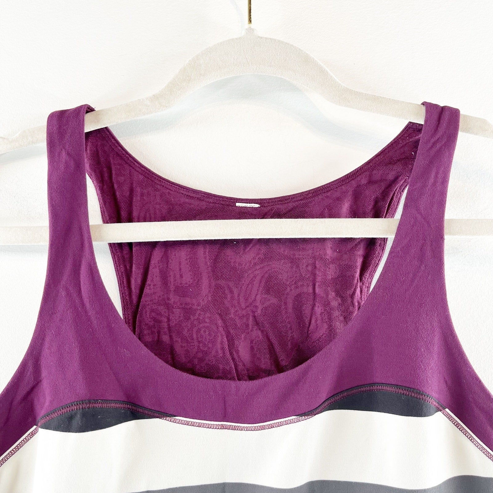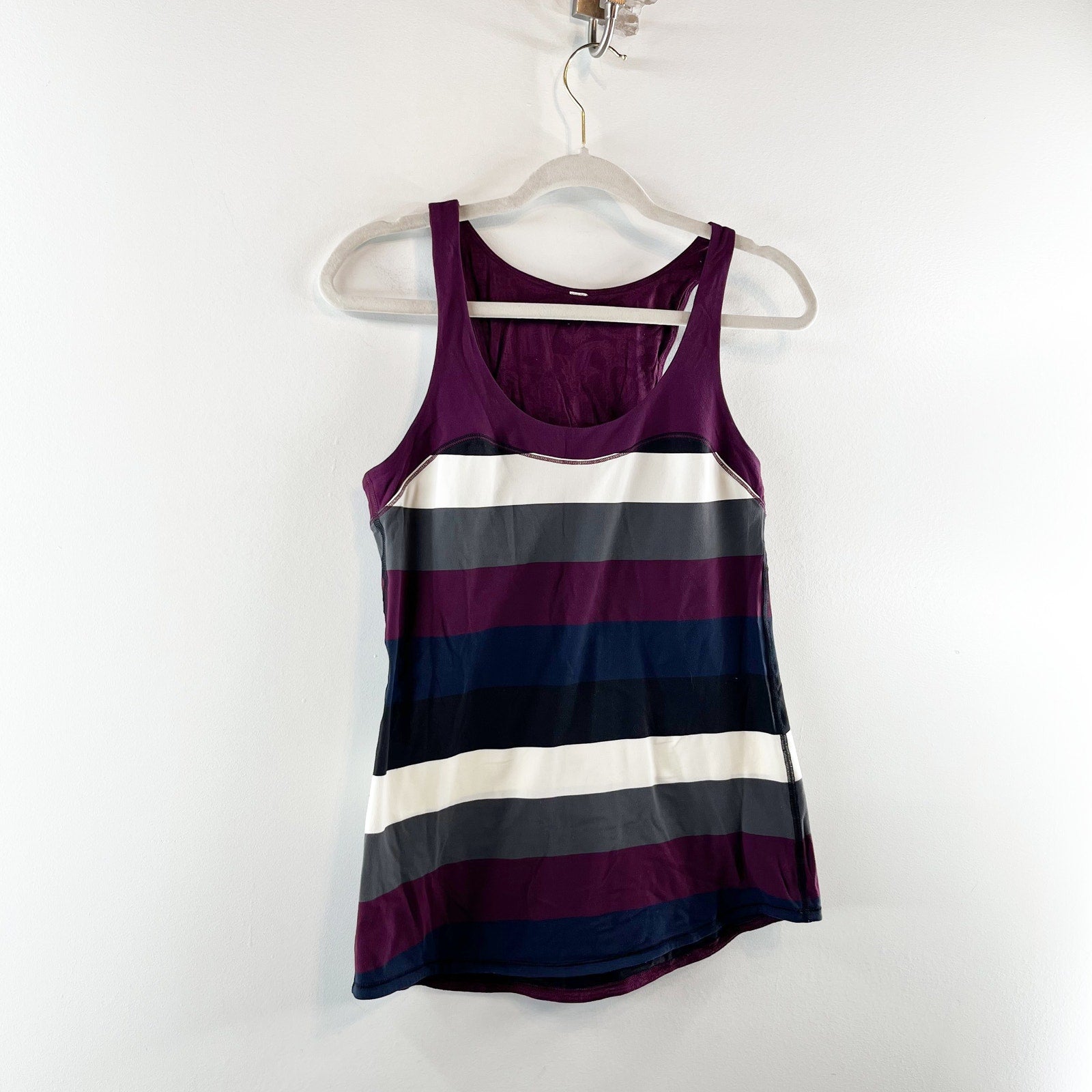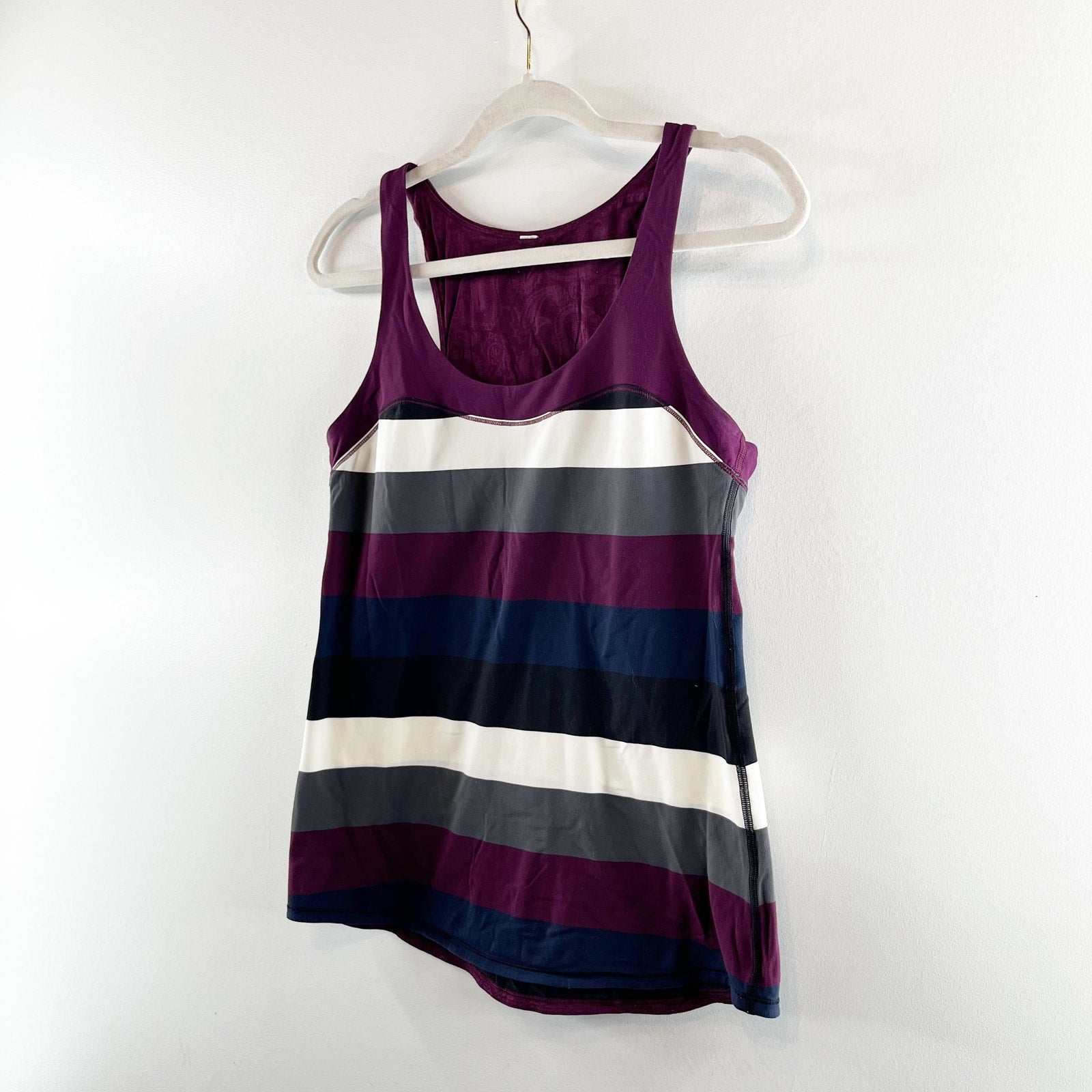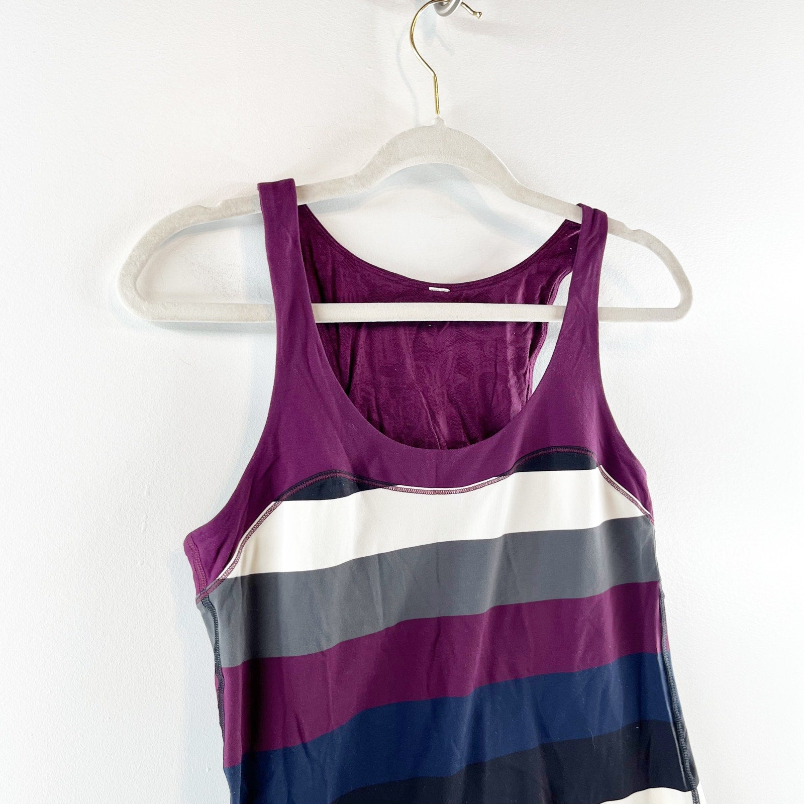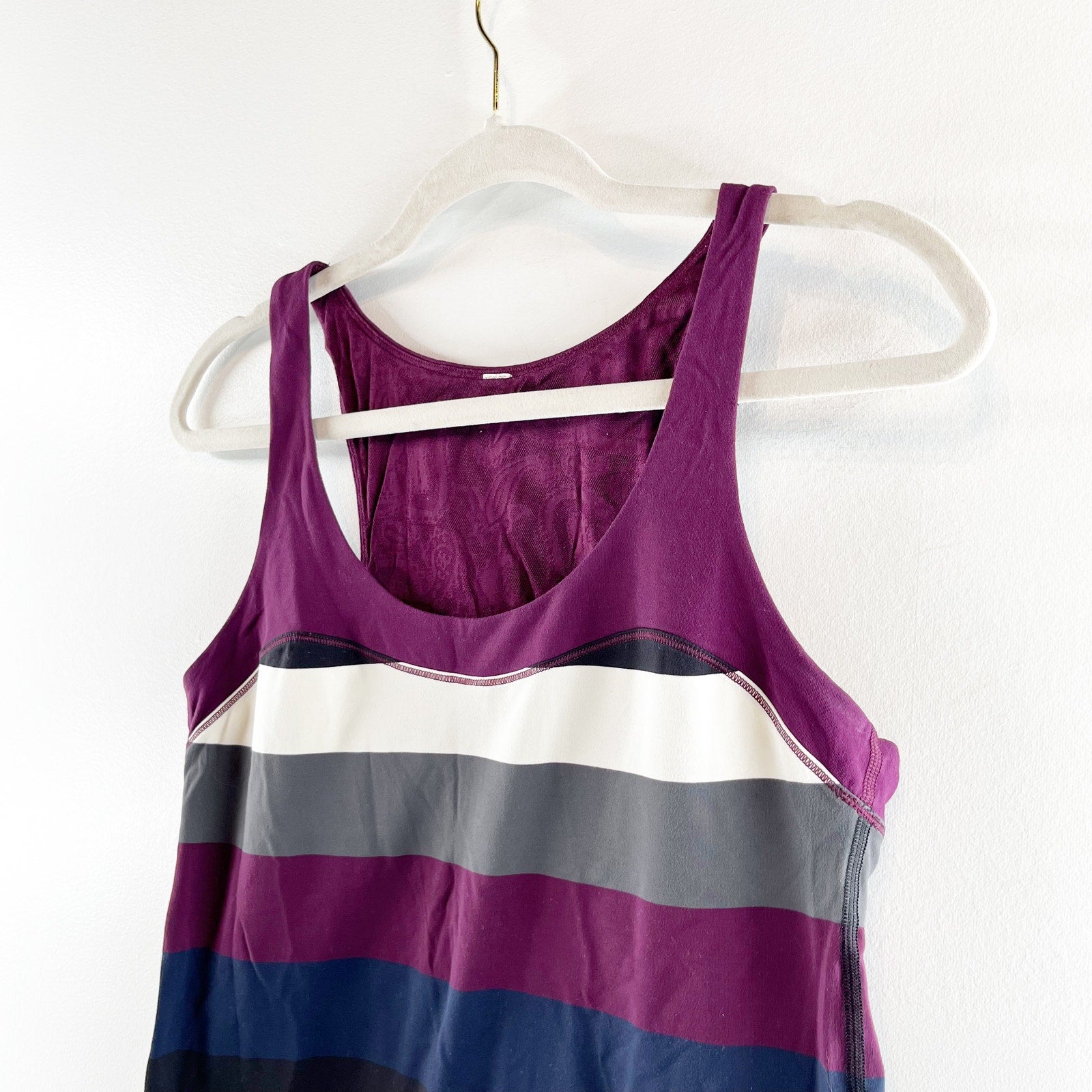 Lululemon Run First Base Striped Racerback Cotton Tank Top Black Purple Small
