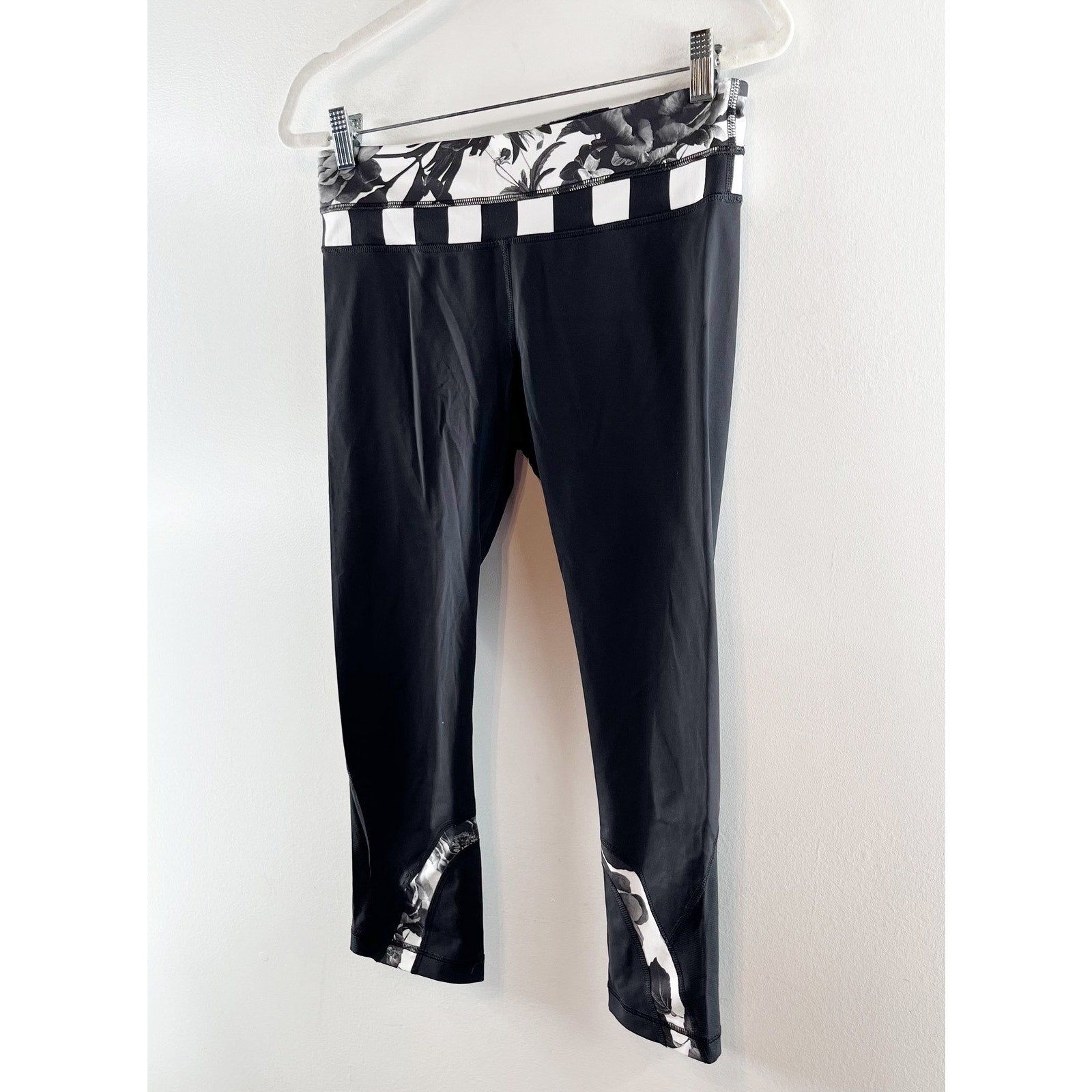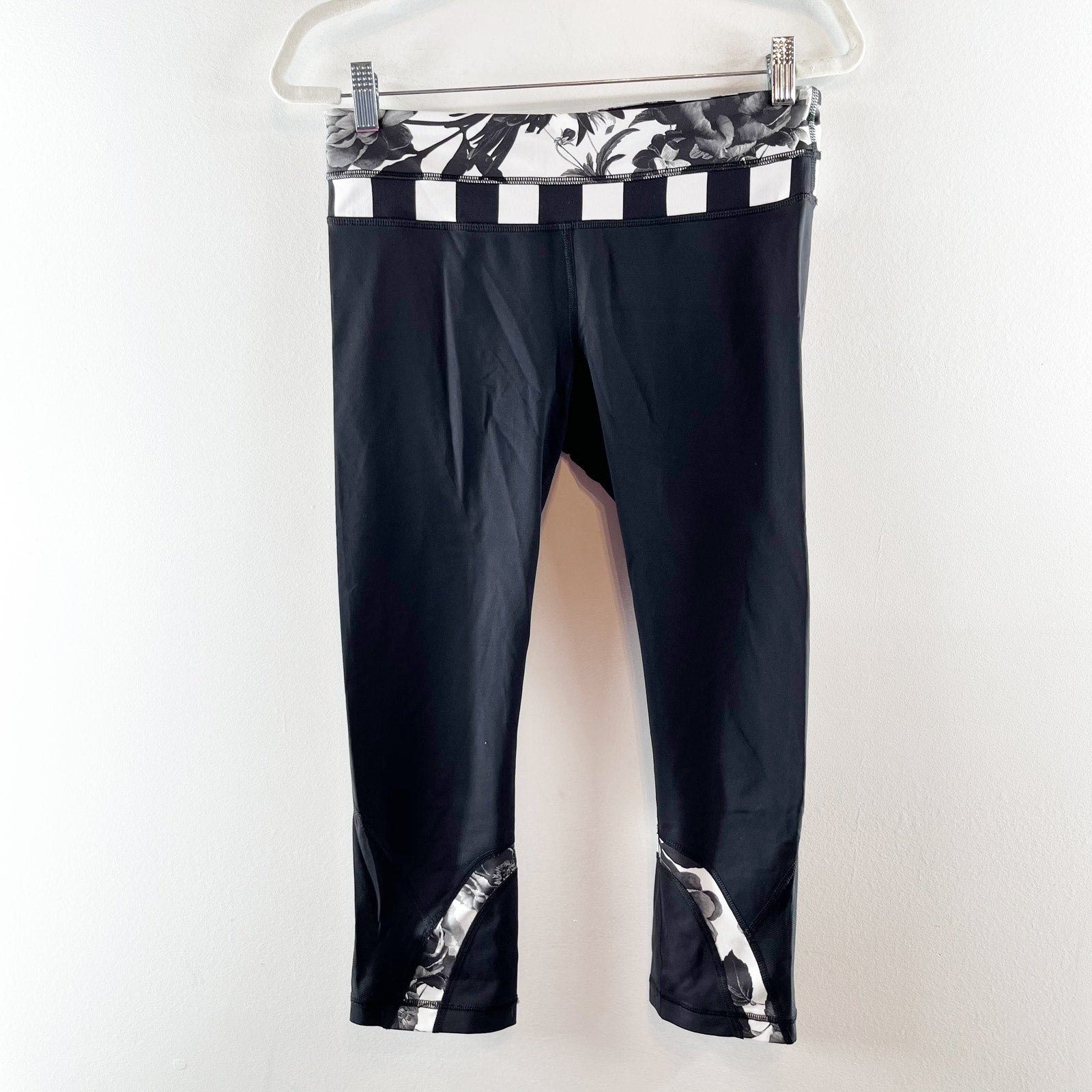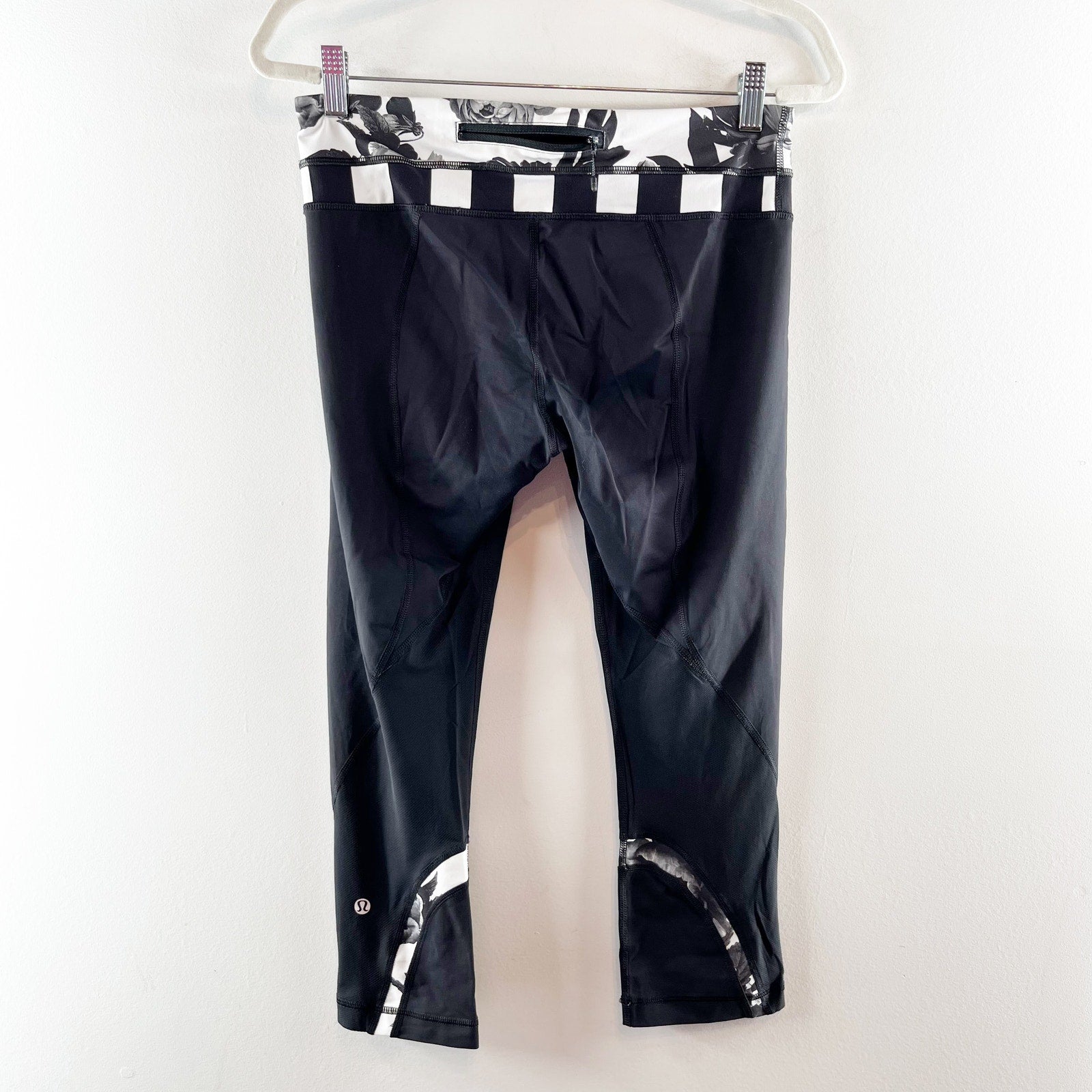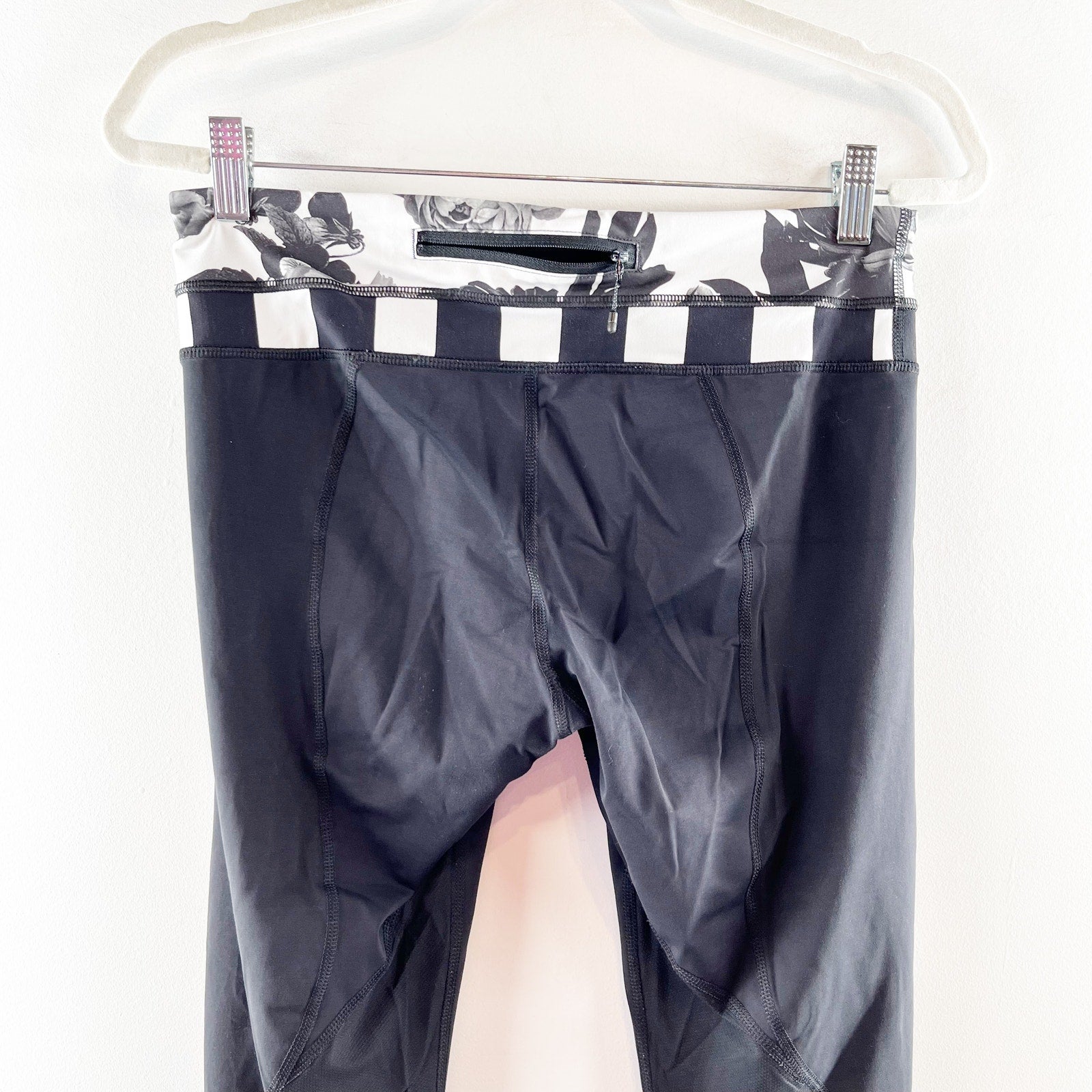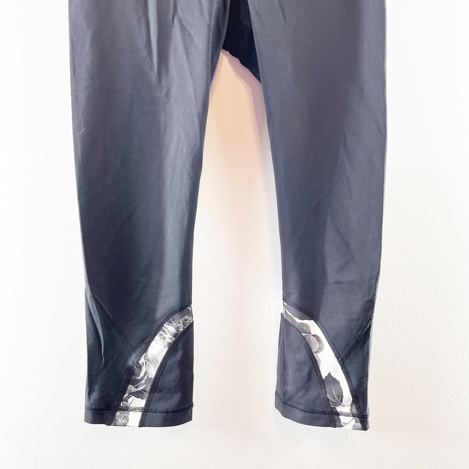 Lululemon Run Inspire Crop Leggings Yoga Running Pants Black Floral Gray 8