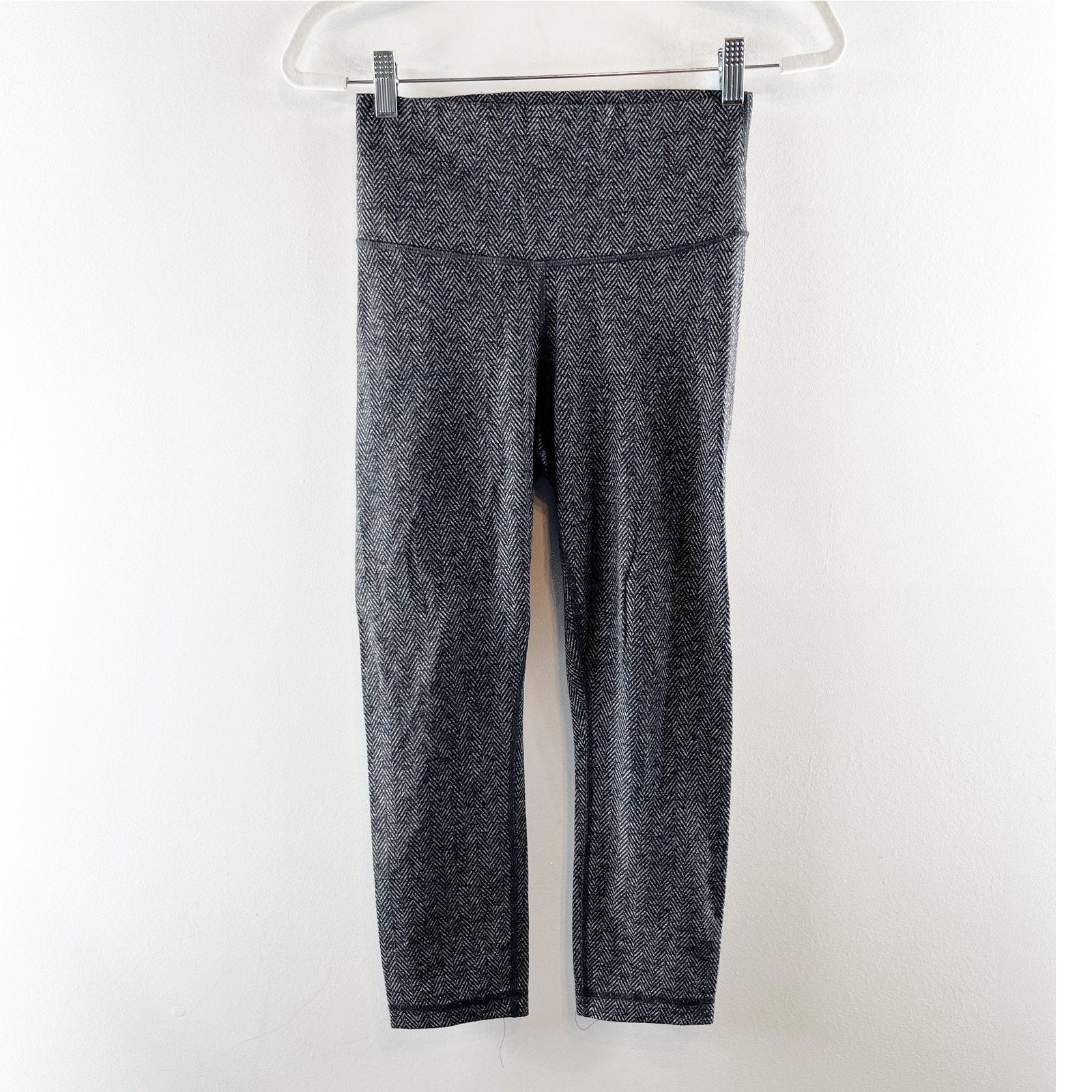 Lululemon Wunder Under Crop Leggings Herringbone Black Gray 6