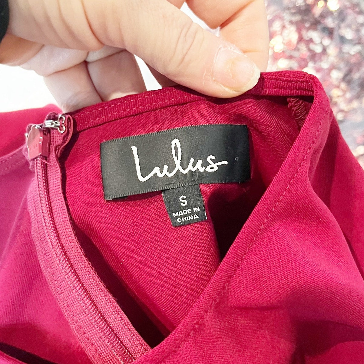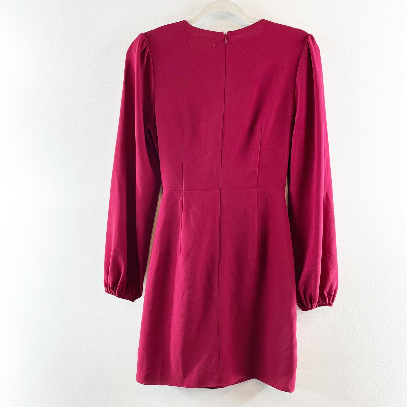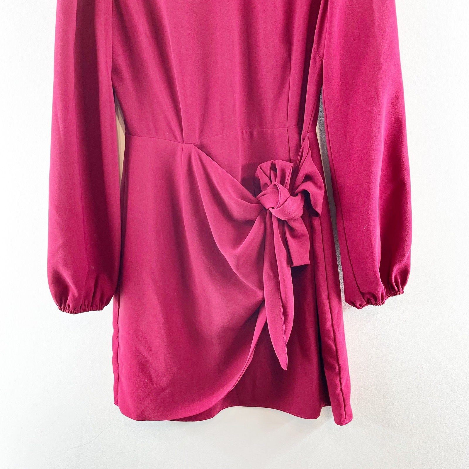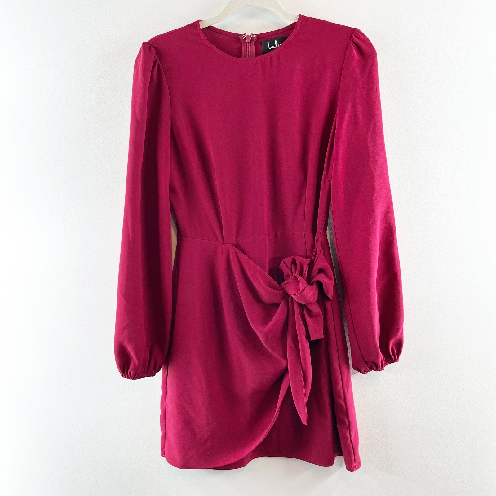 Lulus Believe It or Knot Long Sleeve Tie-Front Skater Dress Wine Red Small