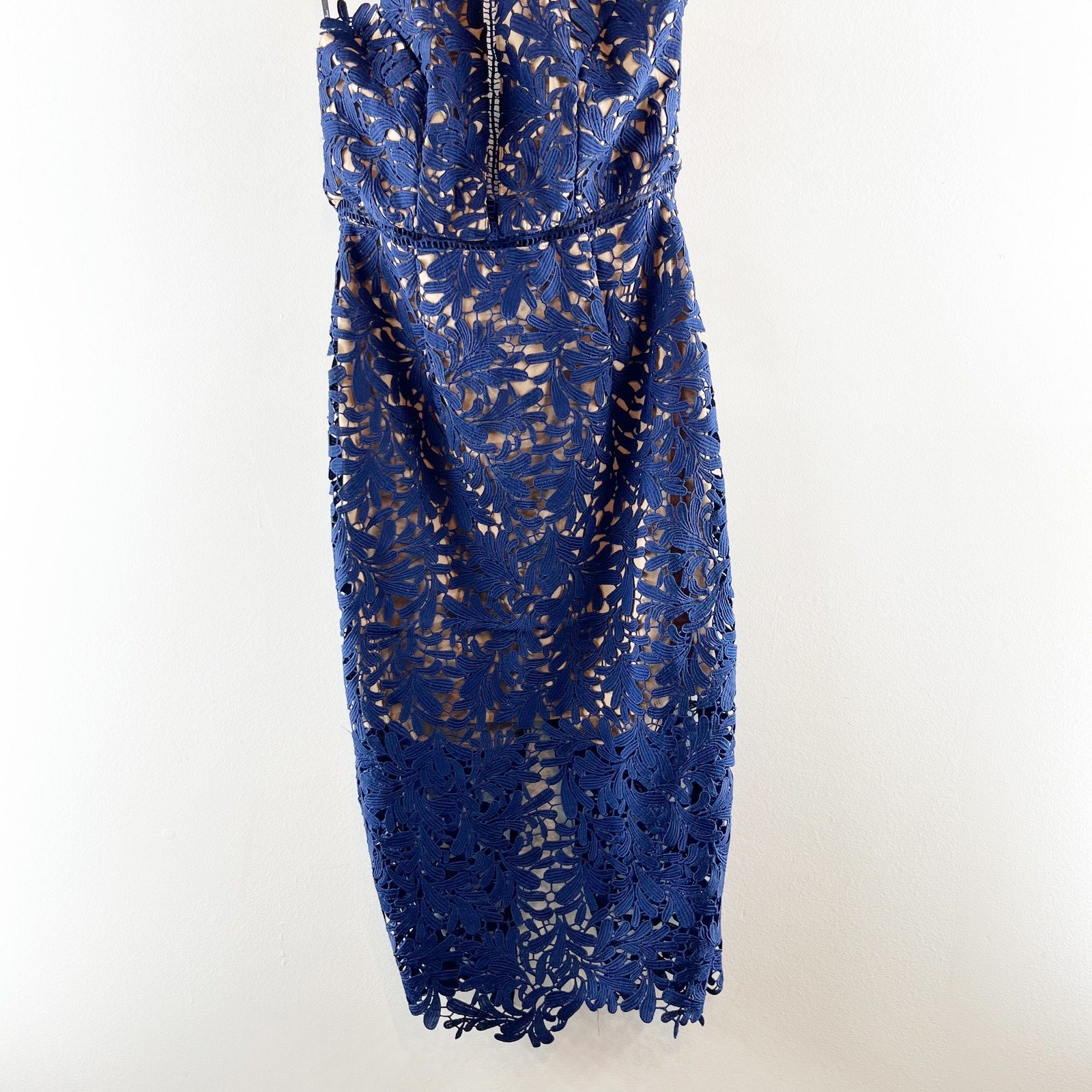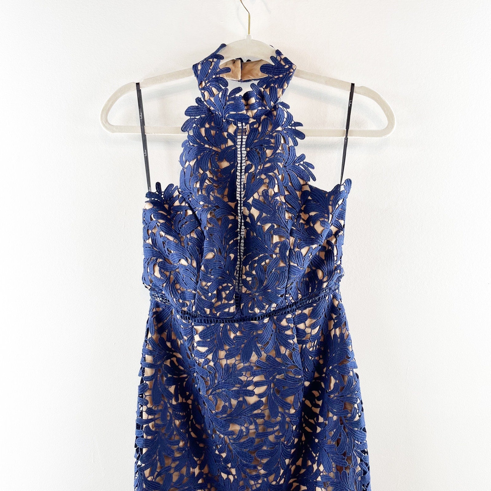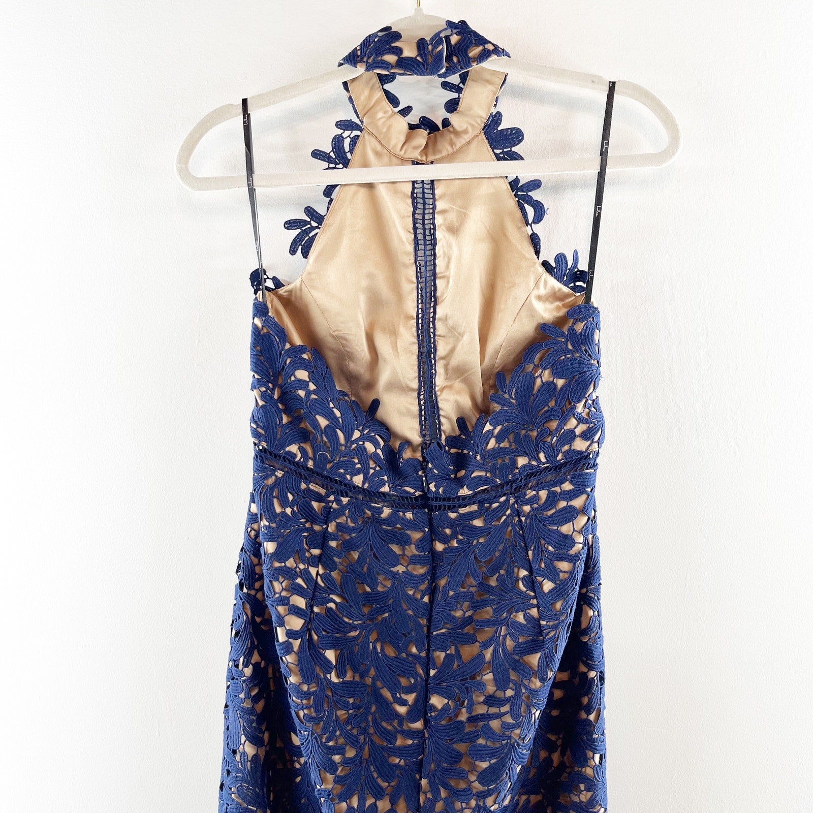 Lulus Divine Destiny Halter High Neck Lined Lace Midi Dress Navy Blue Medium