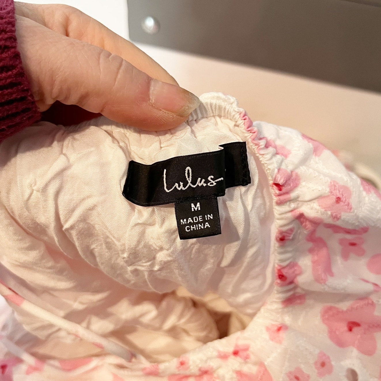 Lulus Just Dainty White Floral Print Lace-Up Backless Mini Dress Pink Medium