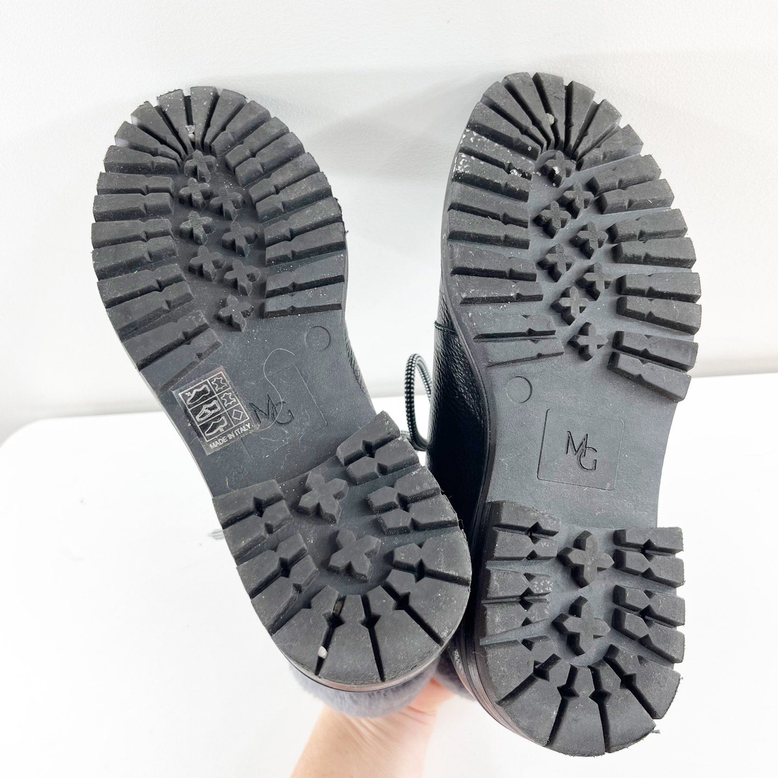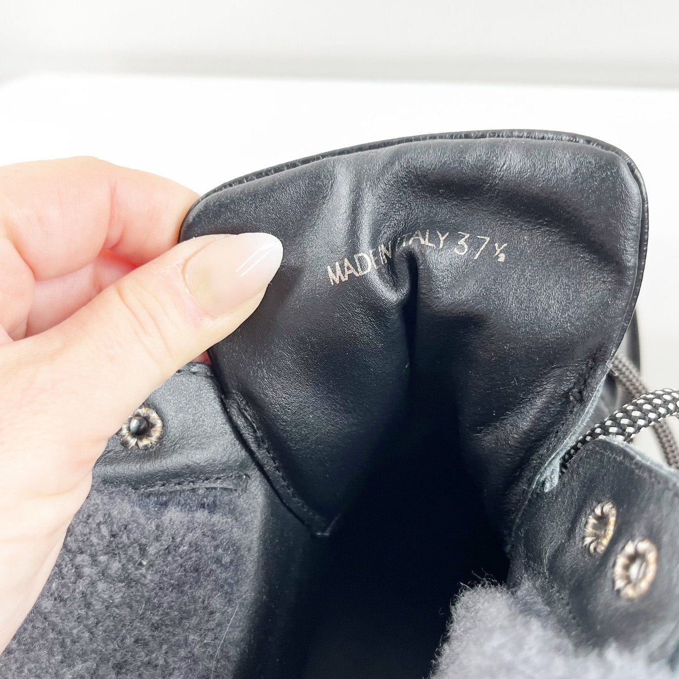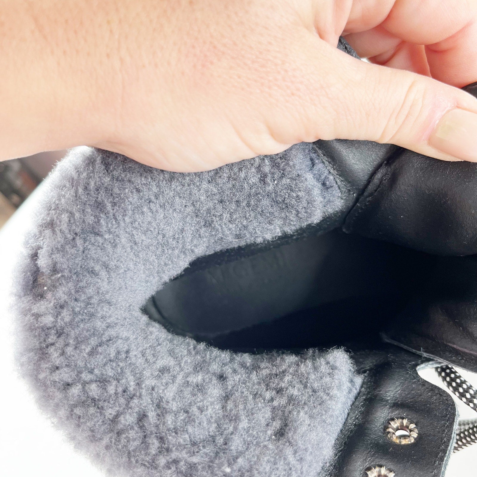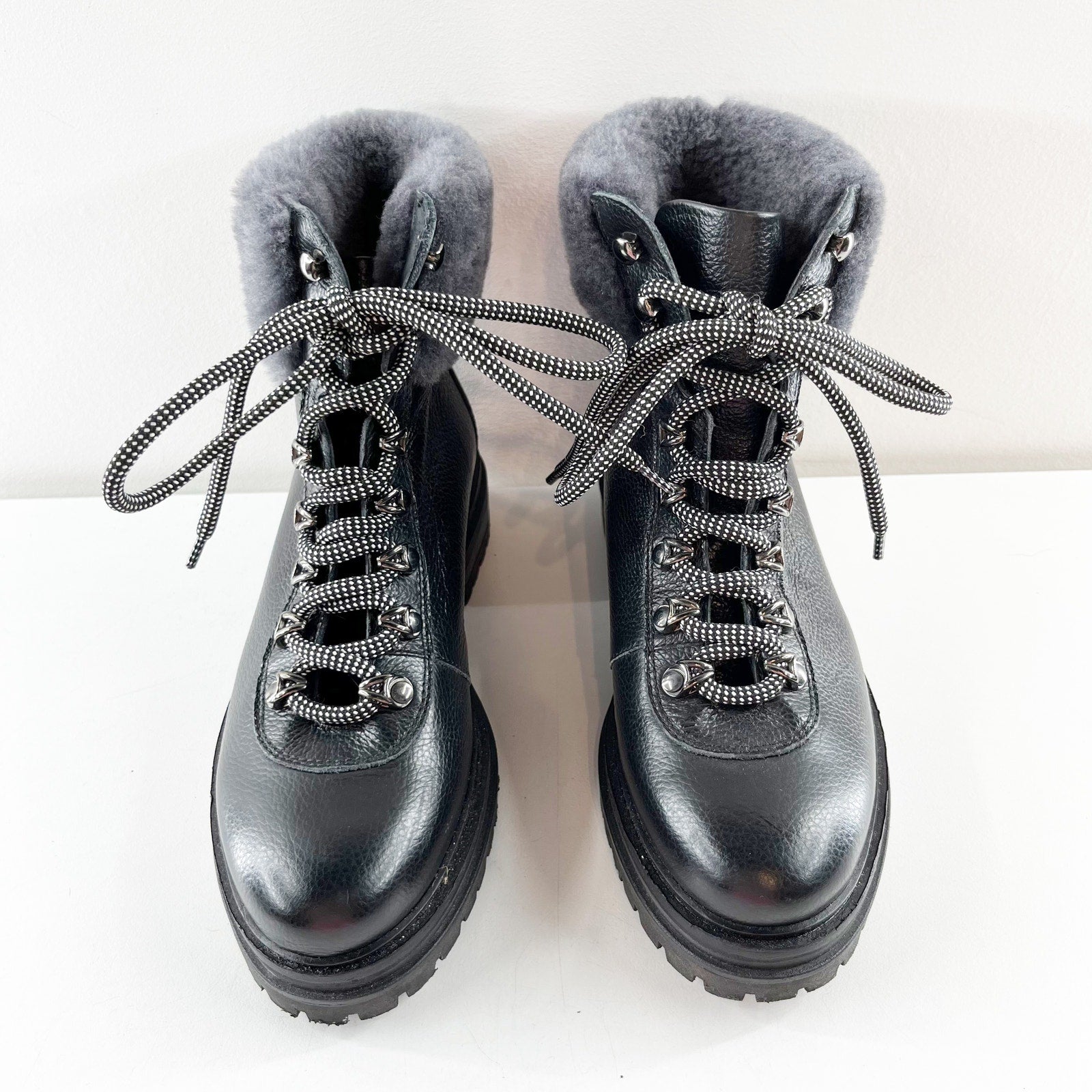 M Gemi Alpi Lace Up Ankle Combat Boots Shearling Faux Fur Trim Black 7.5