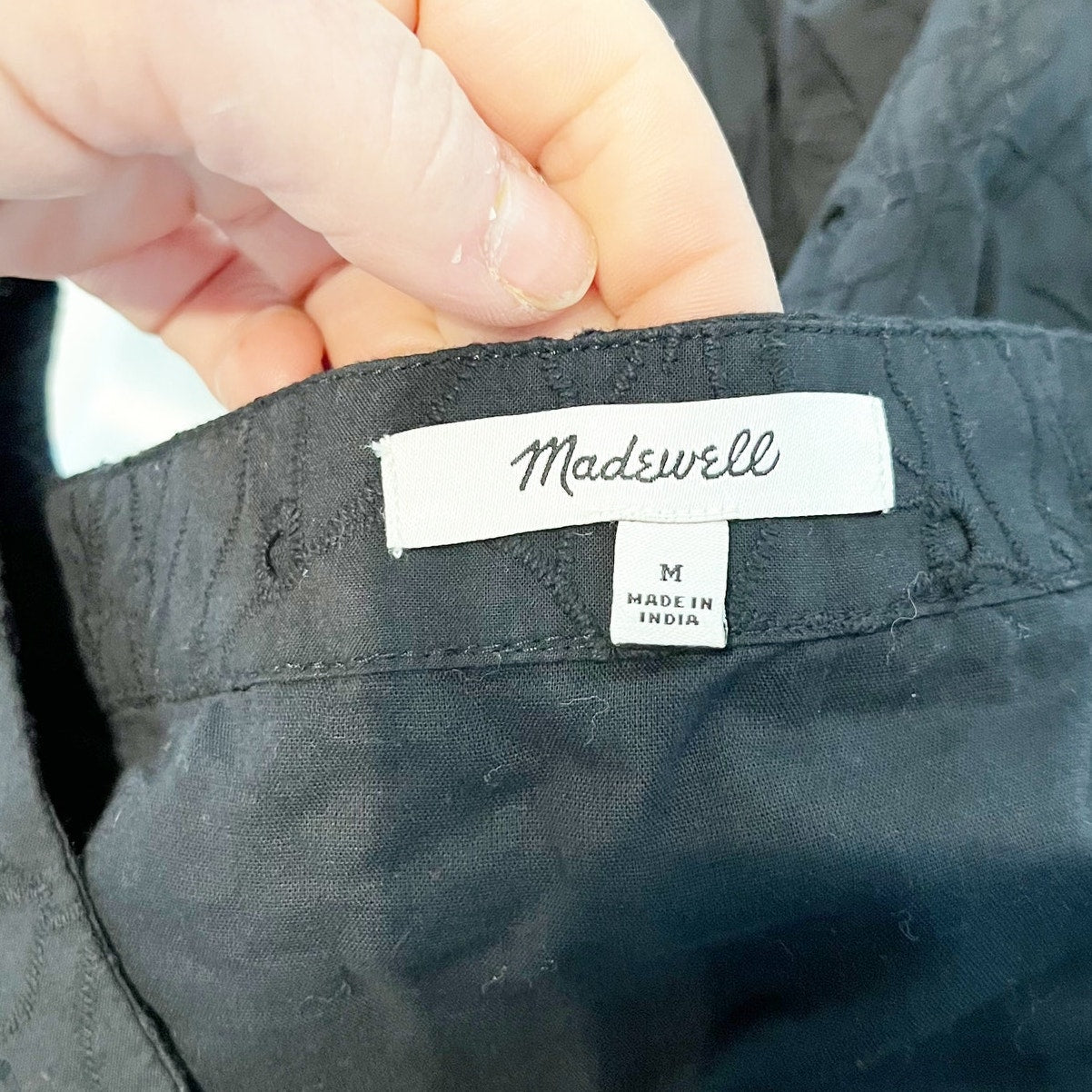 Madewell Allie Square Neck Short Sleeve Cotton Eyelet Mini Dress Black Medium