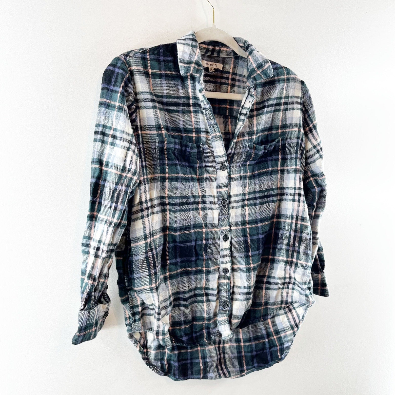Madewell Flannel Plaid Sunday Button Up Shirt in Cronston Green XS