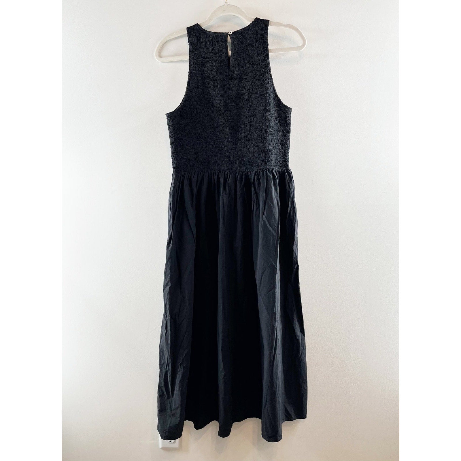 Madewell Melody Smocked Cotton Poplin Midi Dress Black Large