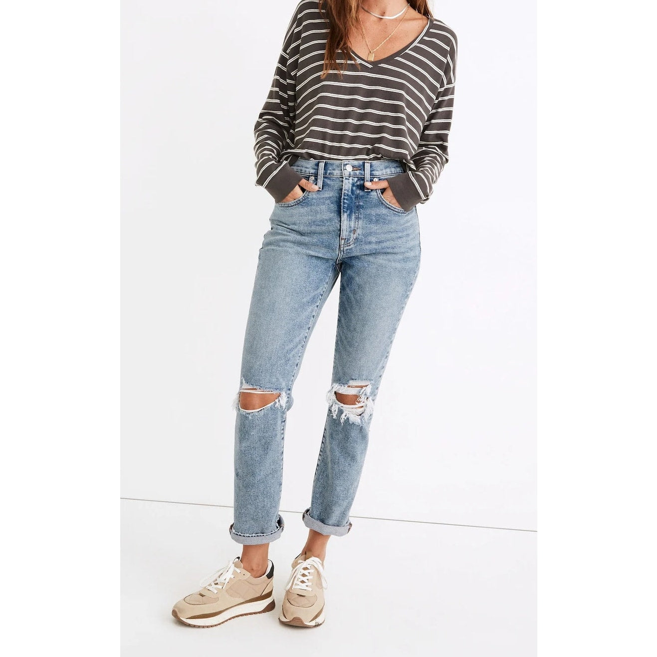 Madewell The Roadtripper High Rise Slim Boyjeans Ripped Edition Blue 26