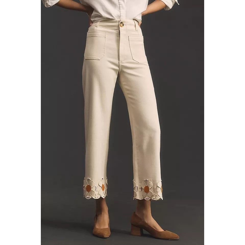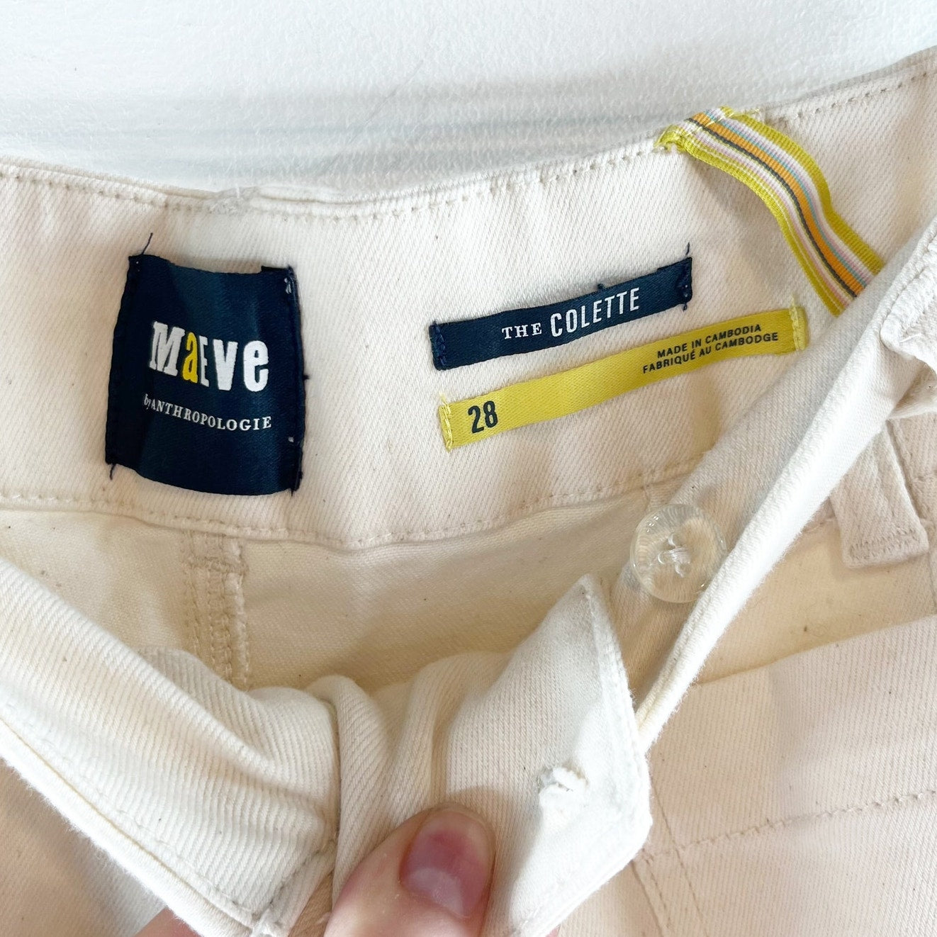 Maeve Anthropologie Colette High Rise Denim Cropped Wide Leg Jeans Cream 28