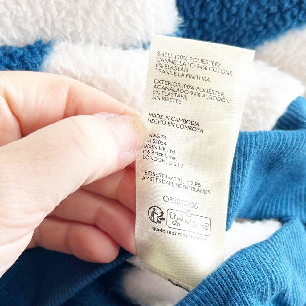 Maeve Anthropologie Cotton Sherpa Fleece Striped Sweater Blue White Medium