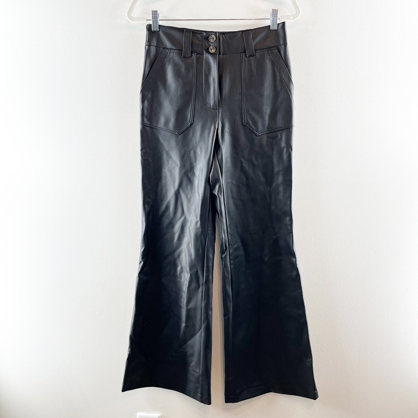 Maeve Anthropologie High Rise Naomi Faux Leather Flare Pants Black 4