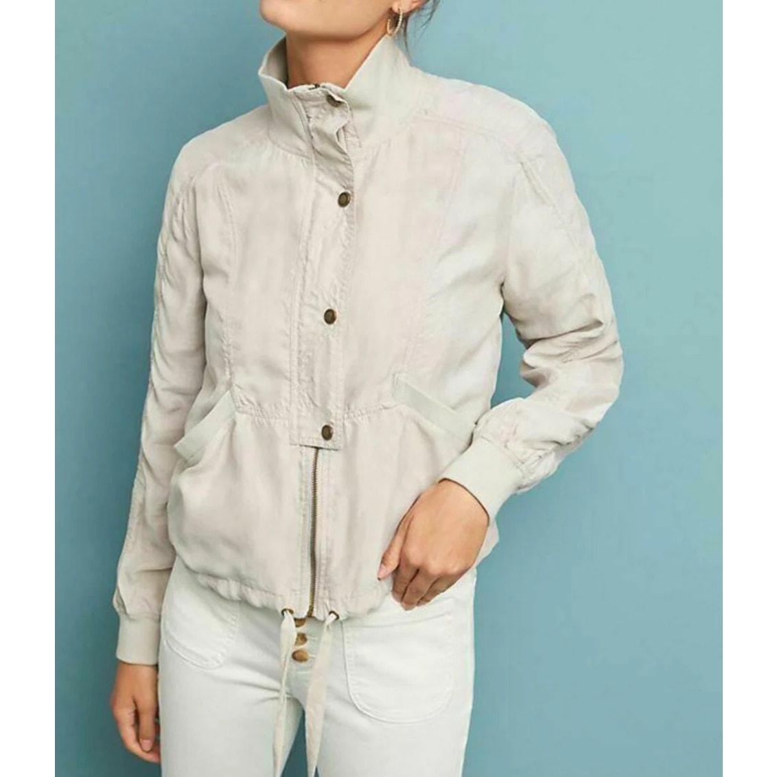 Marrakech by Anthroplogie Long Sleeve Zip Up Cupro Bomber Jacket Beige Medium