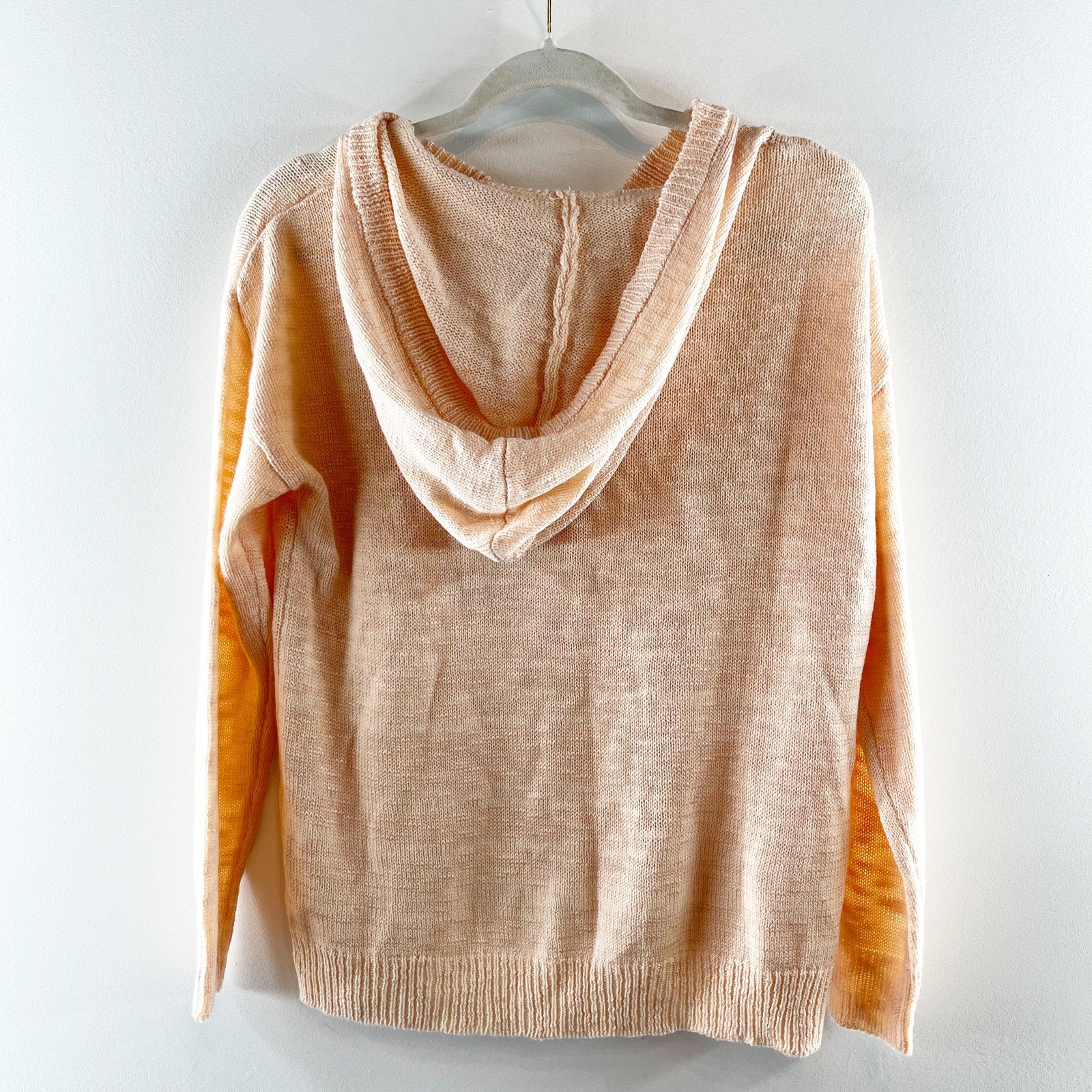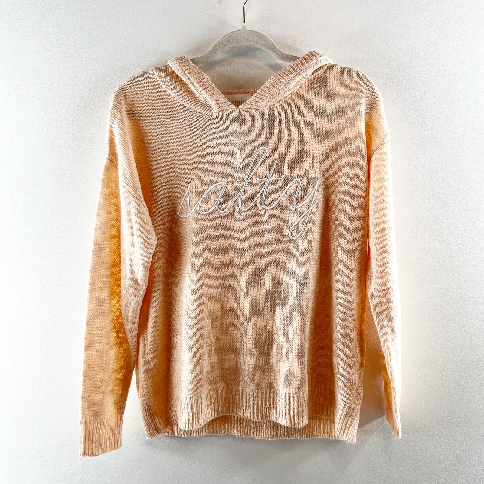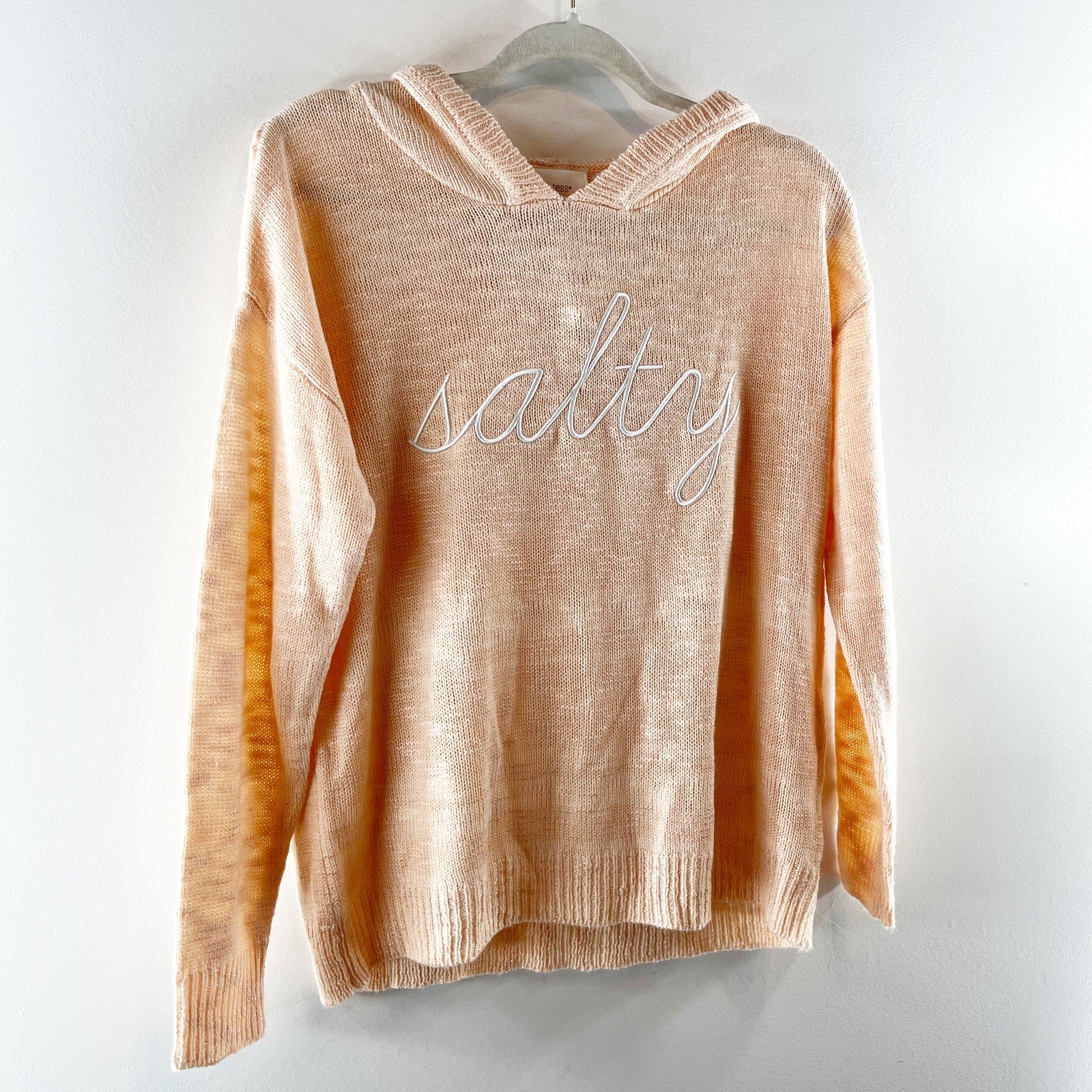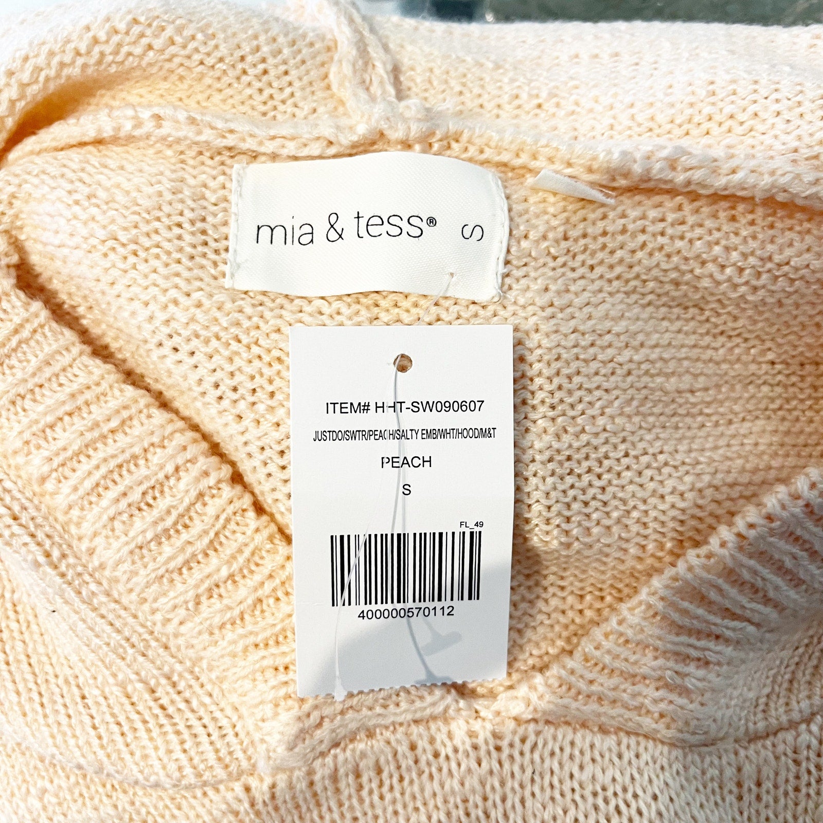 Mia & Tess Salty Embroidered Long Sleeve Knit Sweater Hoodie Peach Orange Small