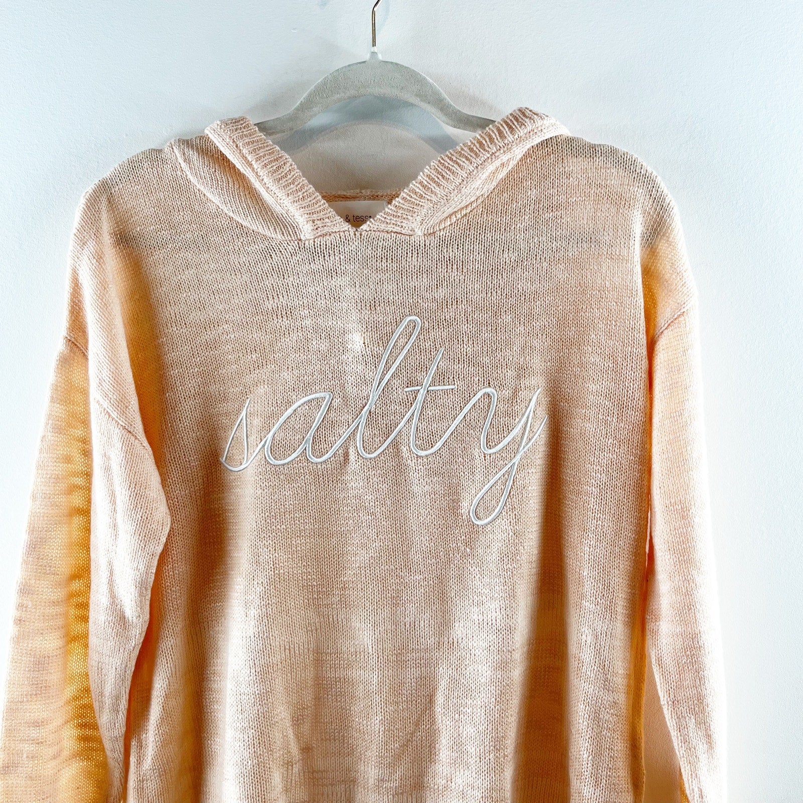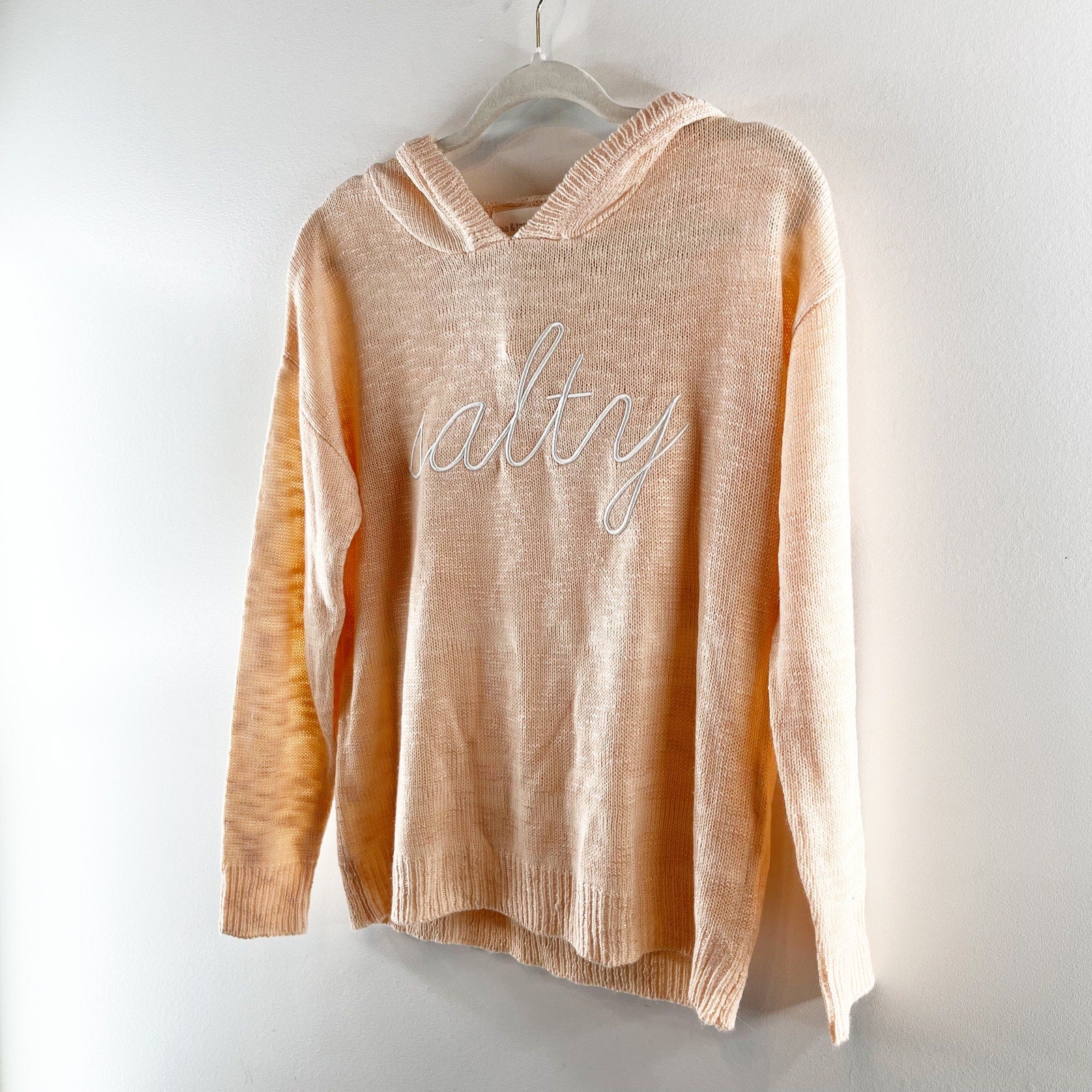 hood, long sleeve, lightweight, knit, sweater, sweatshirt, top, salty, beachy, summer