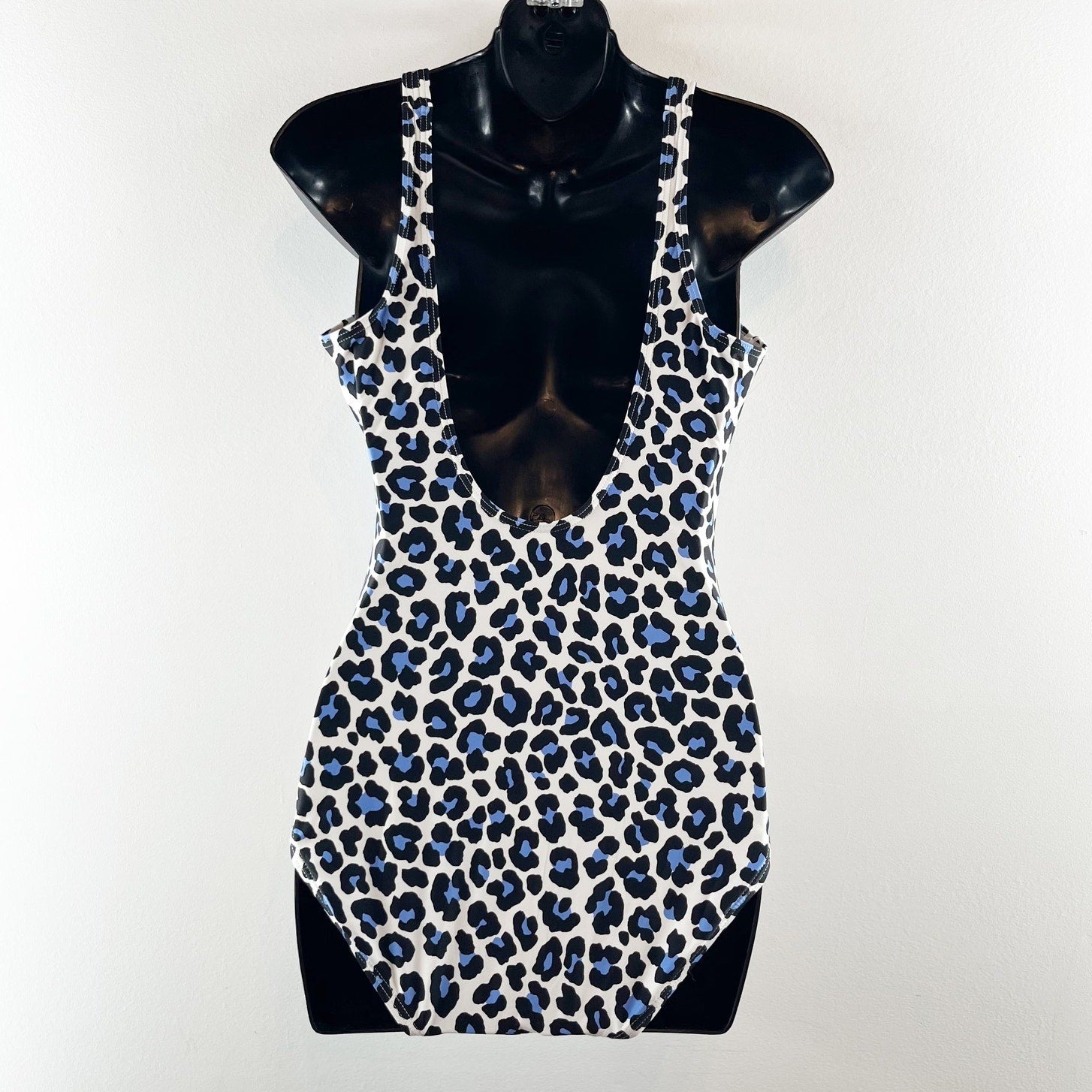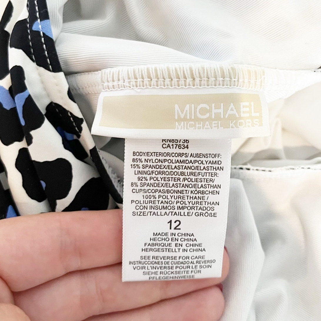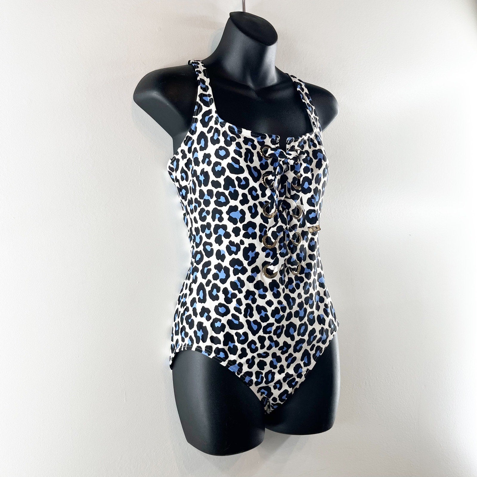 Michael Kors Leopard Lace Up One Piece Low Scoop Back Swimsuit Blue White 12
