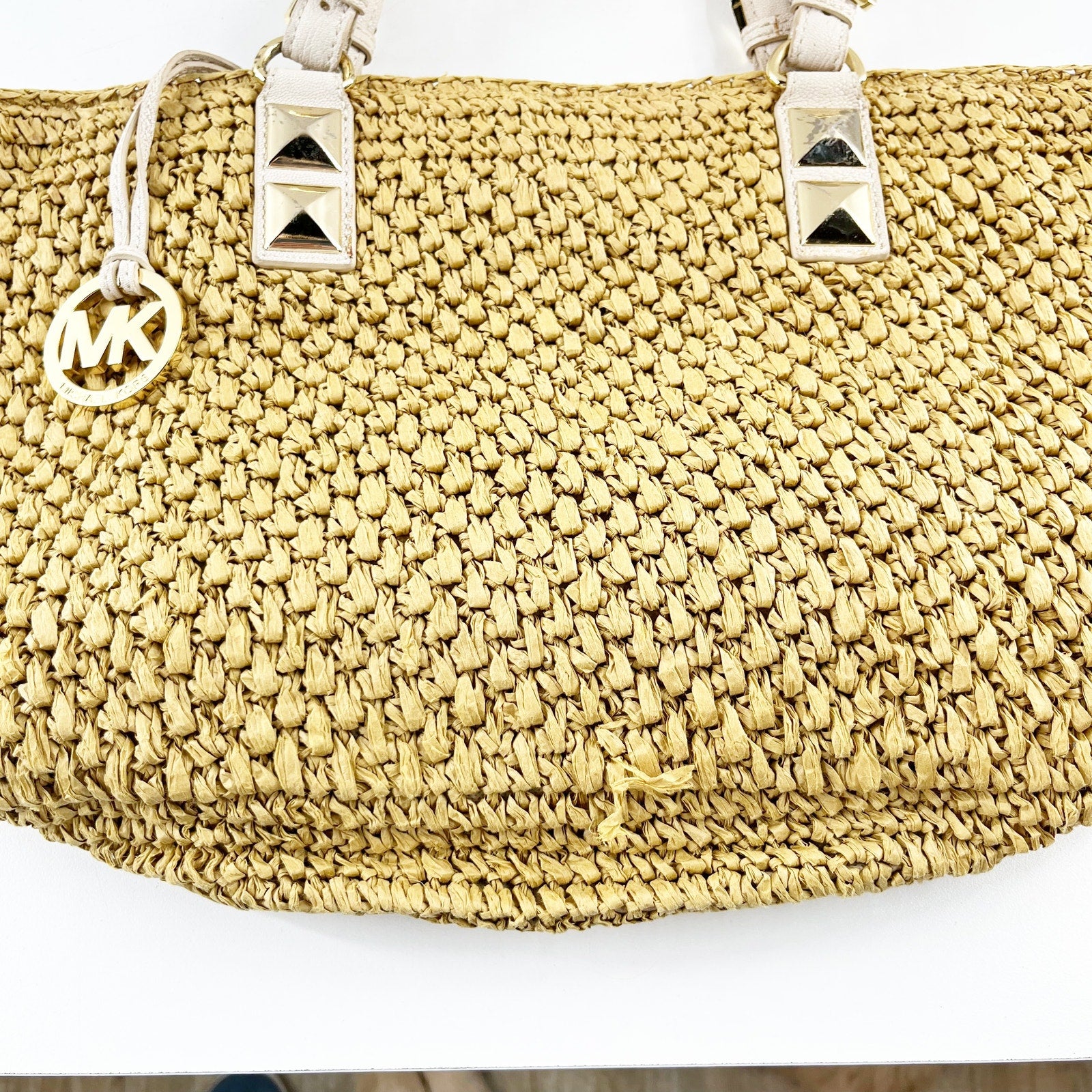 Michael Kors Santorini Straw Raffia Tote Bag Beach Tan White