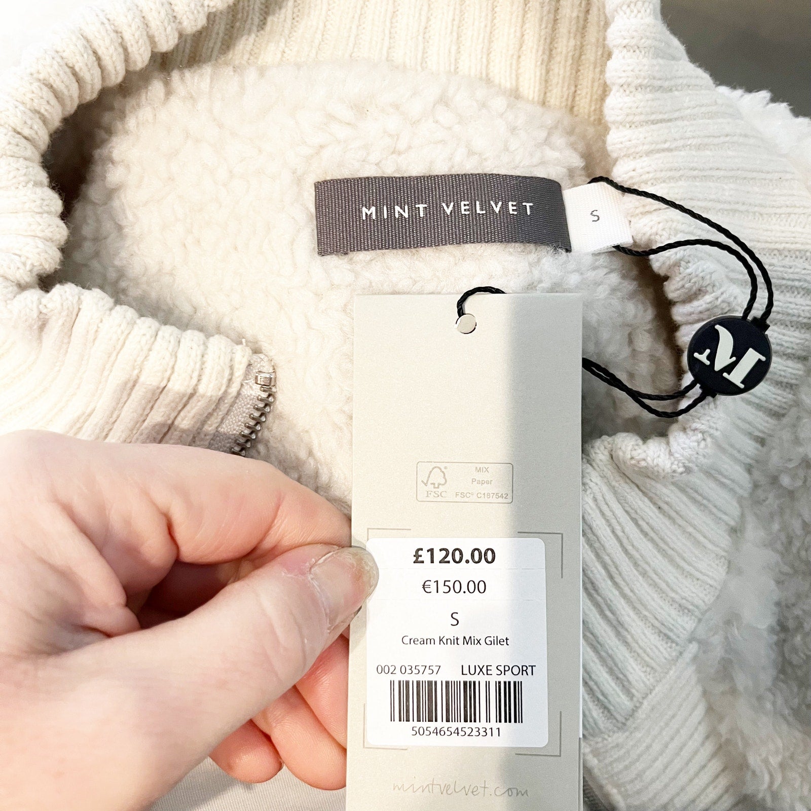 Mint Velvet Knit Mix Full Zip Sleeveless Gilet Vest Cream Small