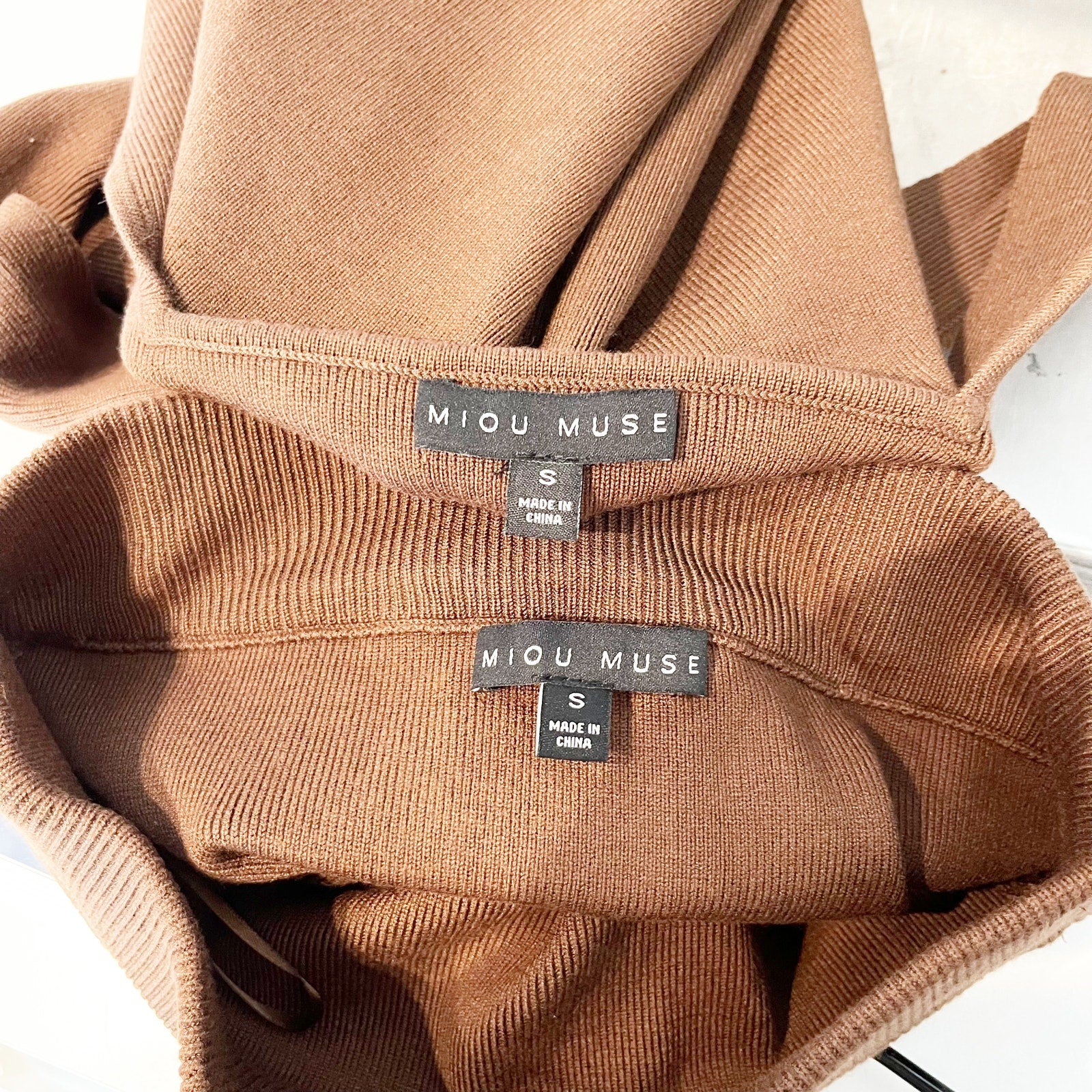 Miou Muse Knit Set Cropped Corset Top High Rise Midi Skirt Brown Small