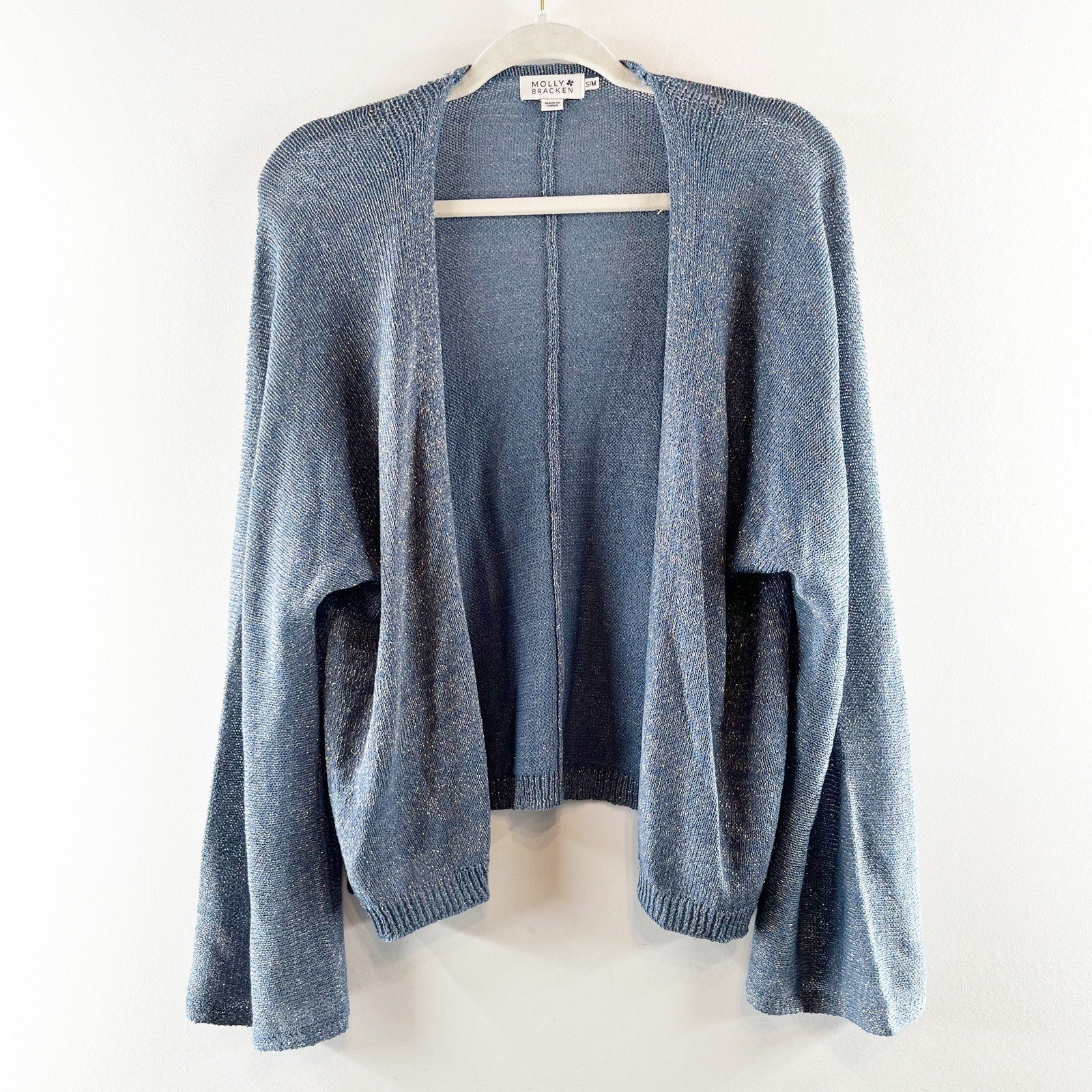 Molly Bracken Long Bell Sleeve Open Front Knit Cardigan Sweater Blue S / M