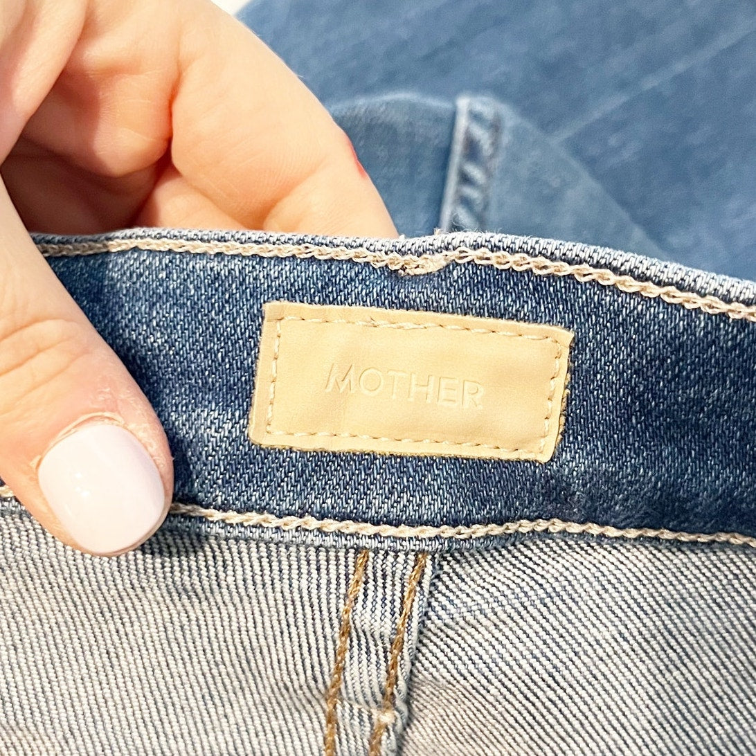 Mother Mid Rise The Double Insider Heel Jeans in Opposites Attract Blue 28
