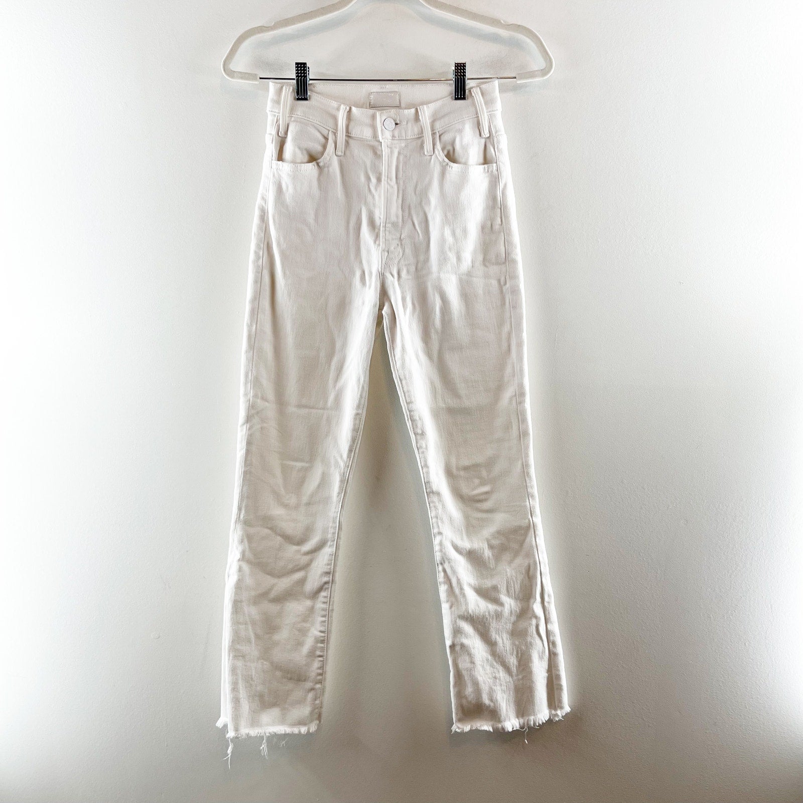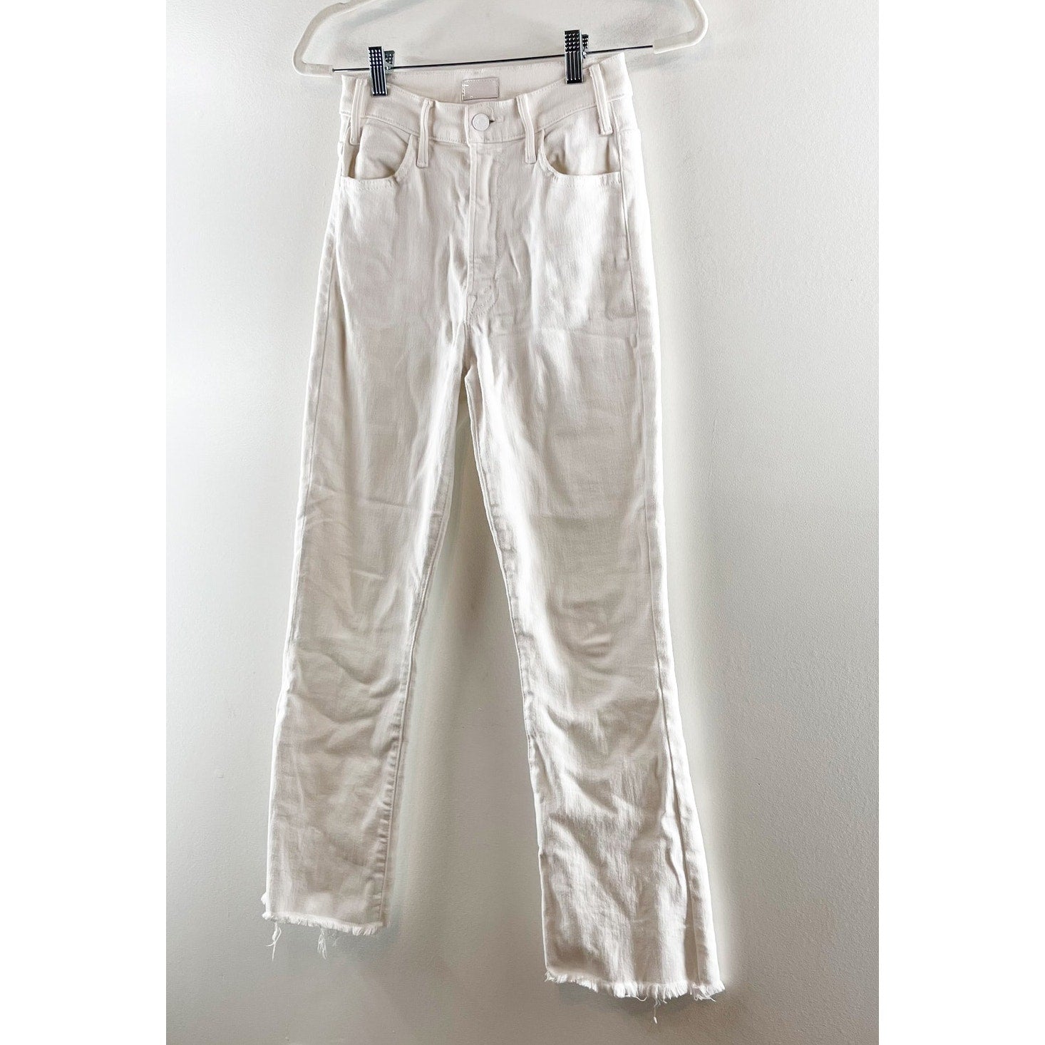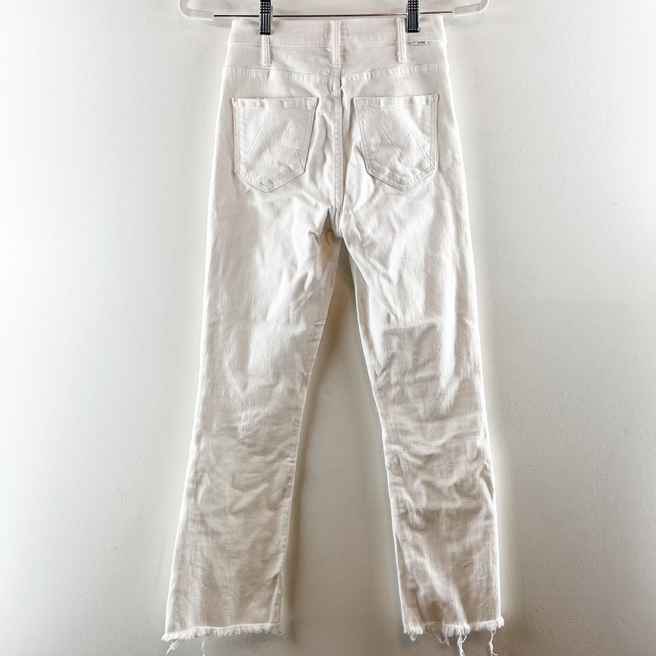 Mother The Hustler Ankle Fray Crop Flare Jeans Fairest of Them All White 24