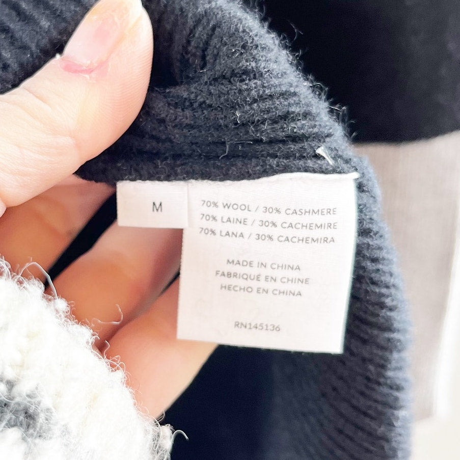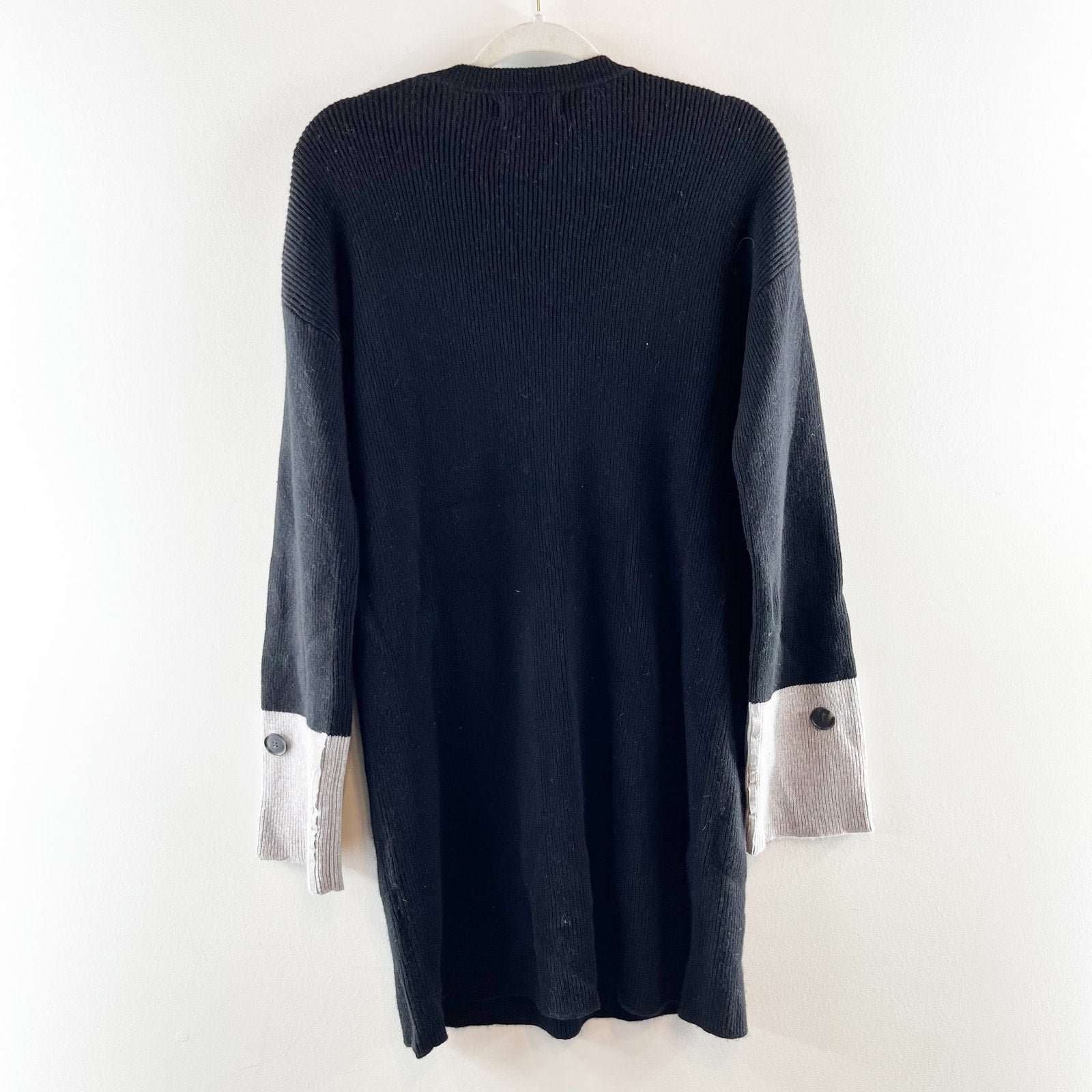 Naadam V Neck Wool Cashmere Mini Sweater Dress Black Gray Medium