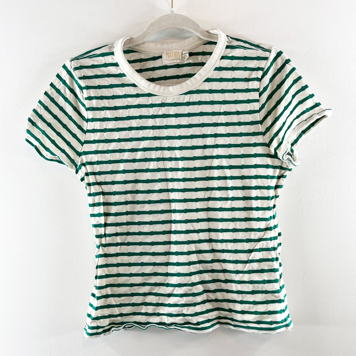 Nation LTD Laurence Shrunken Striped Crewneck Baby Tee Shirt Green White XL