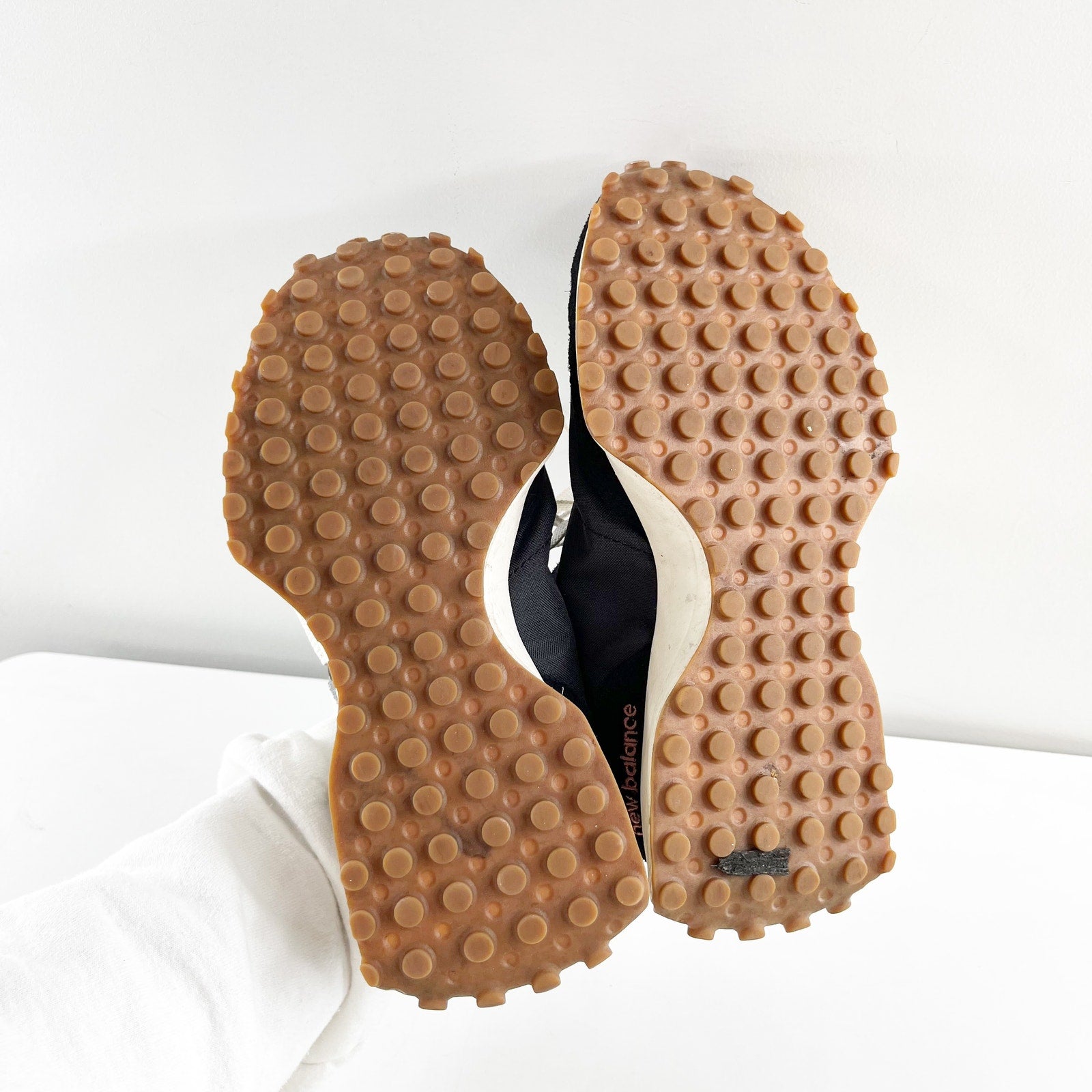 New Balance 327 Synthetic Suede N Logo Low Top Sneakers Black White Gum 7.5