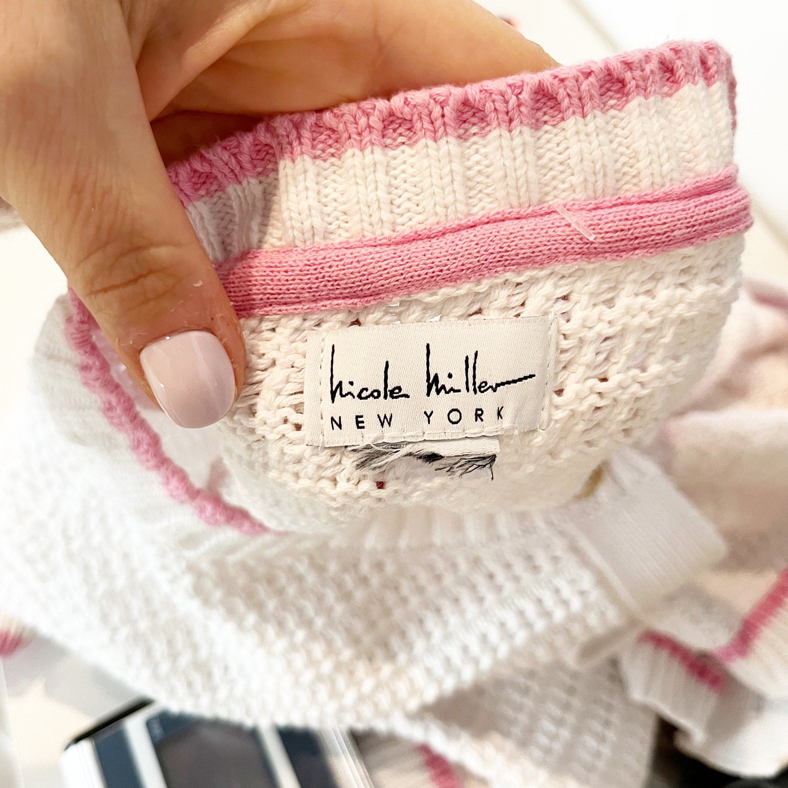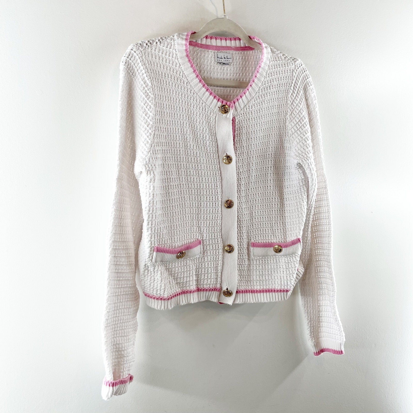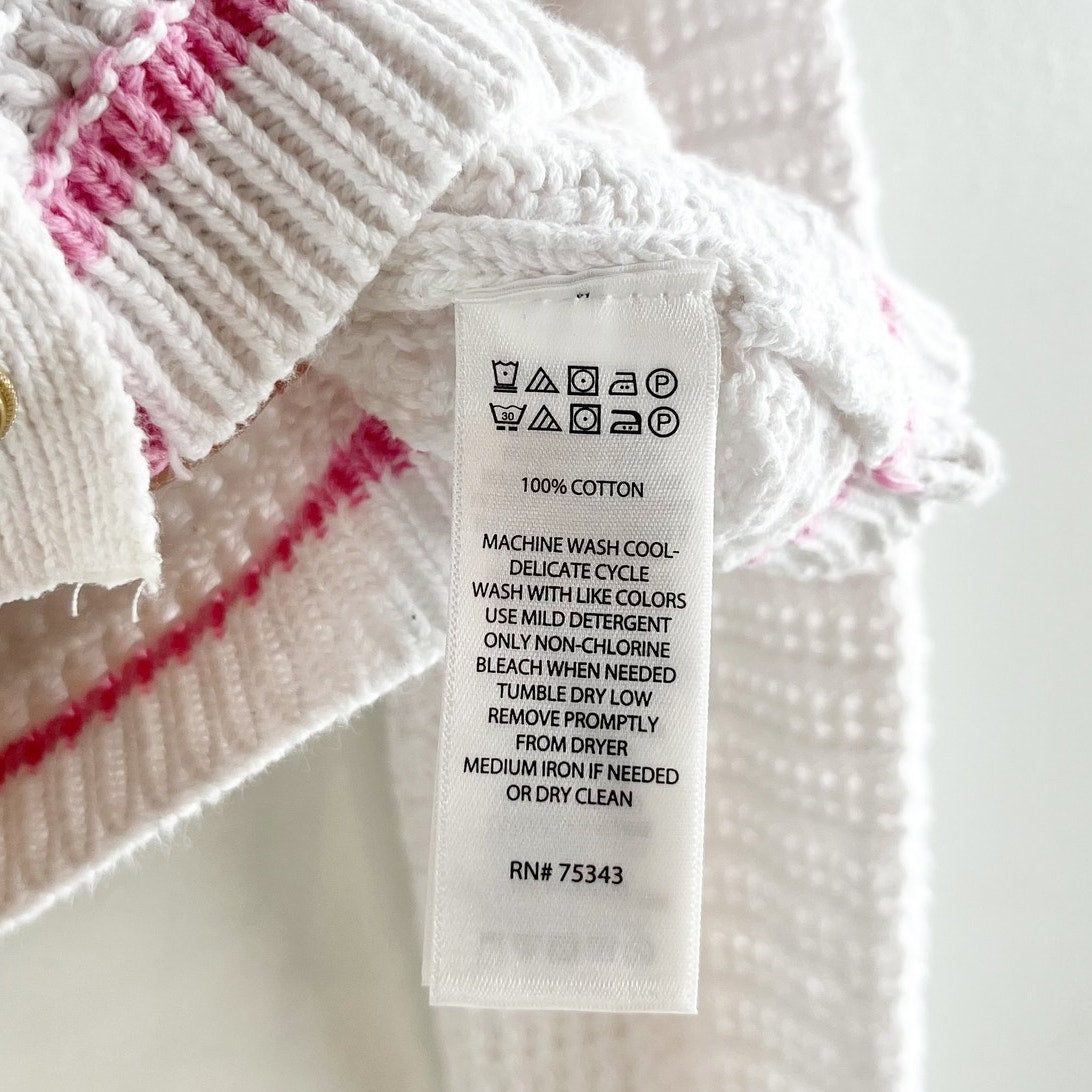 Nicole Miller Long Sleeve Cotton Button Up Cardigan Sweater White Pink Medium