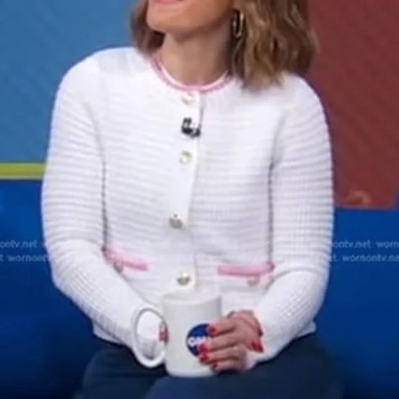cardigan, sweater, button up, pink, white trim, preppy, cotton, gold buttons
