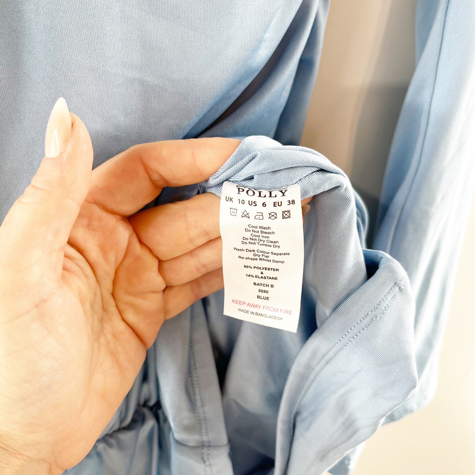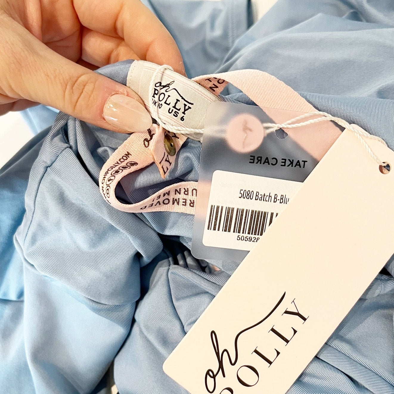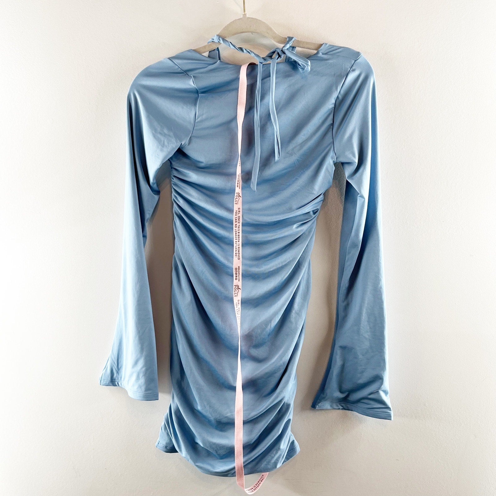 Oh Polly Short and Sweet Halter Cutout Long Bell Sleeve Mini Dress Blue 6