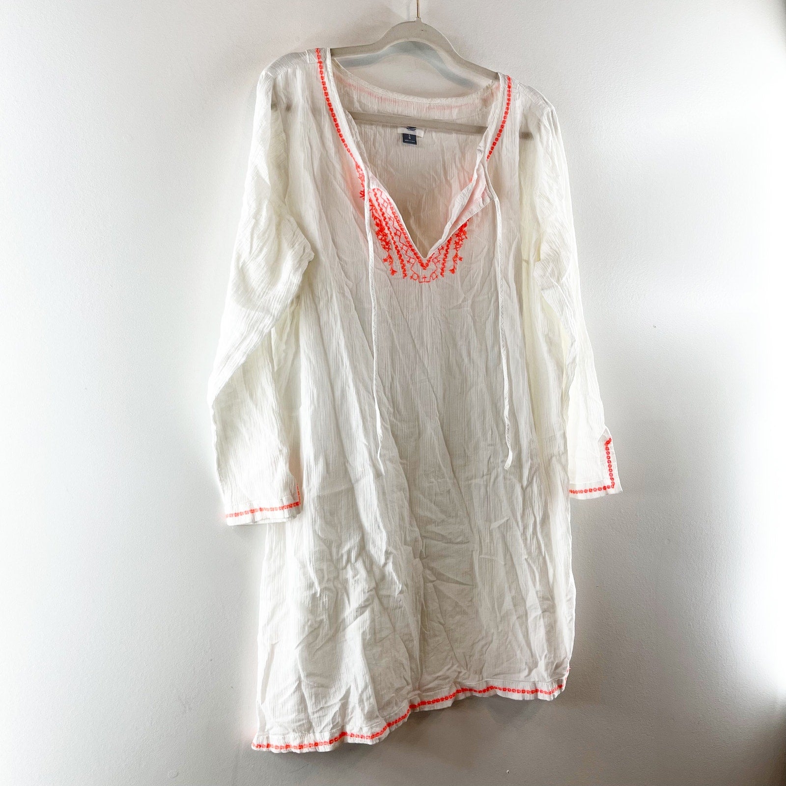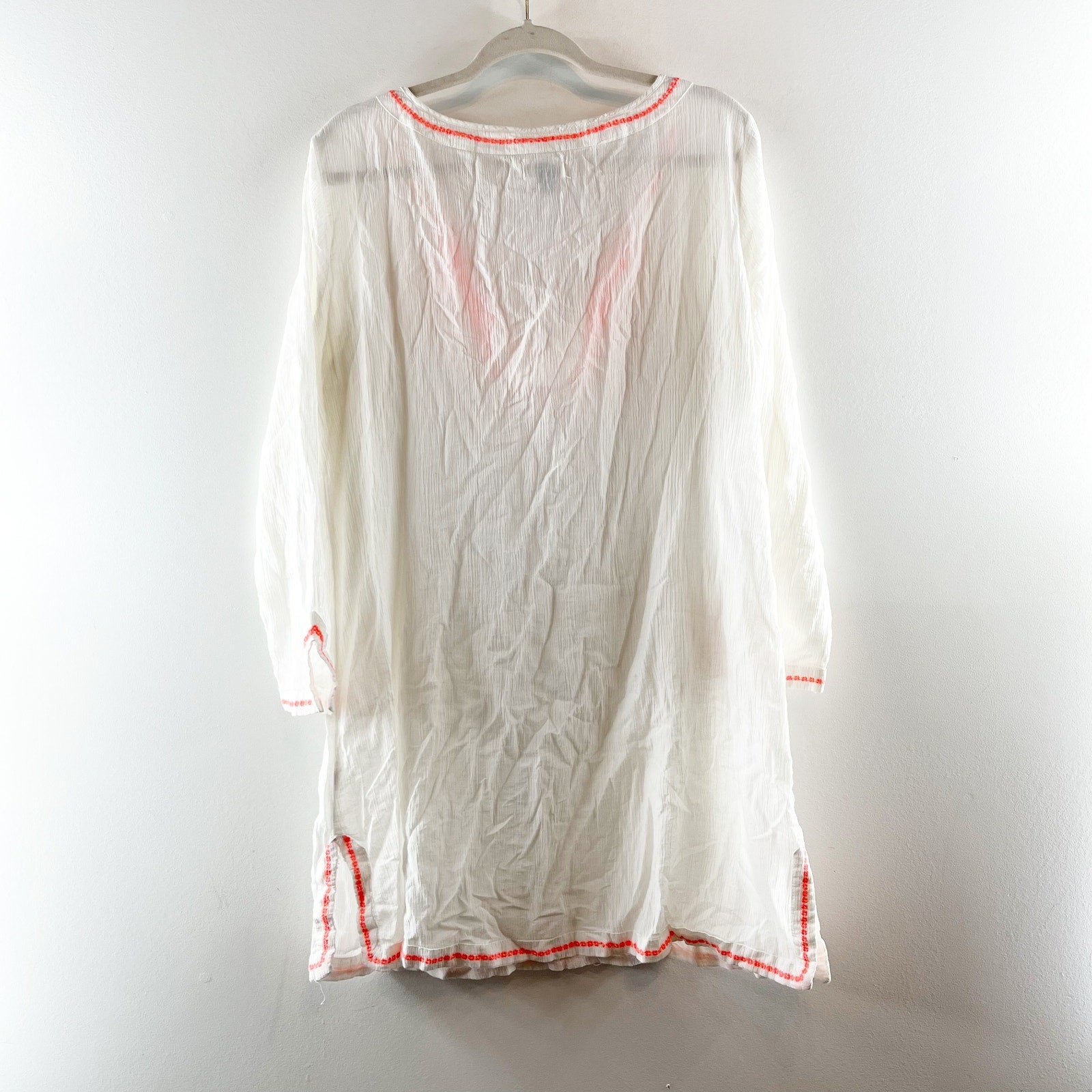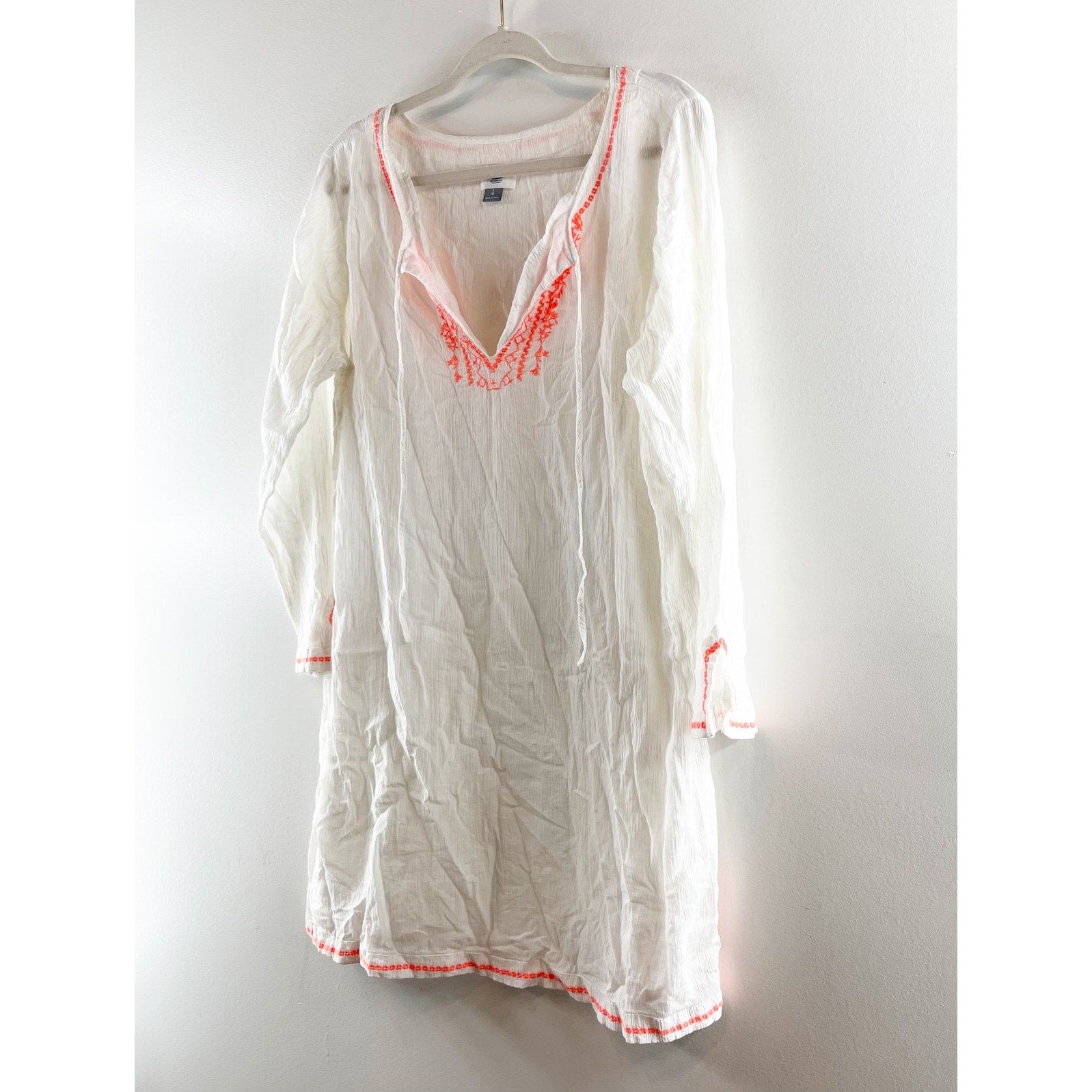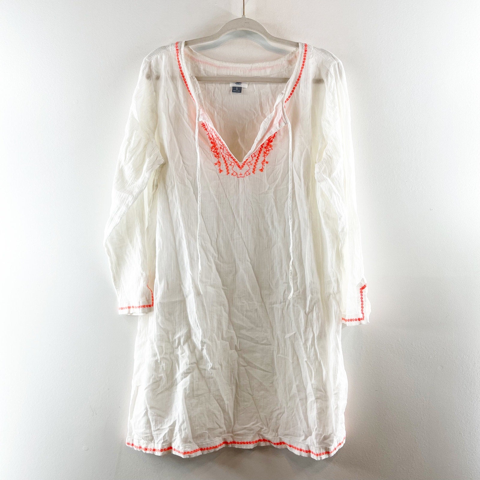 Old Navy Embroidered Gauze 3/4 Sleeve Swimsuit Coverup White Pink Large
