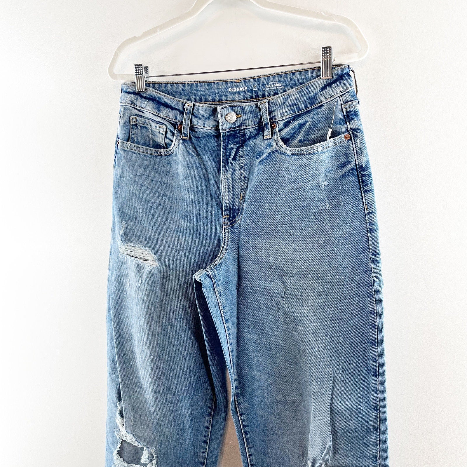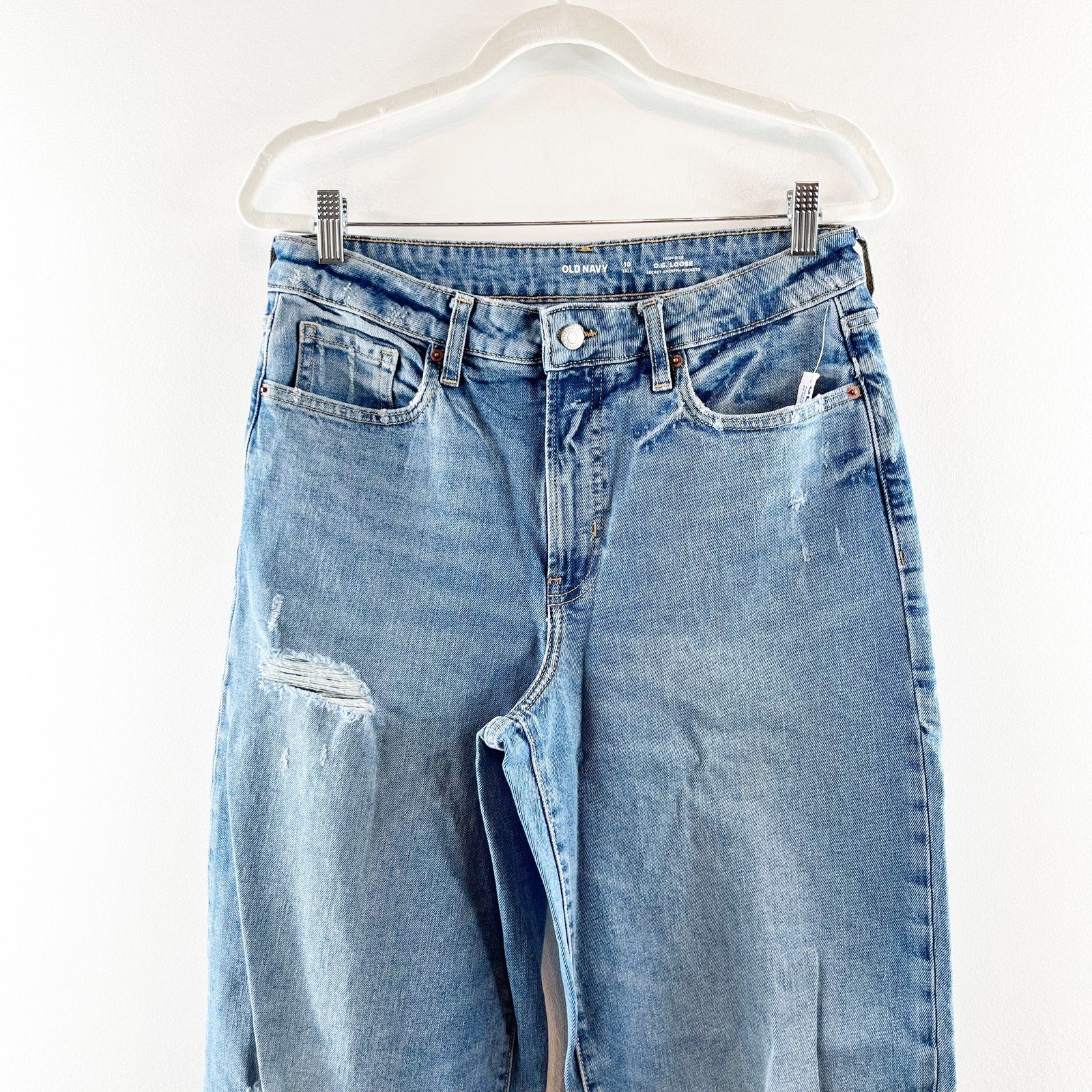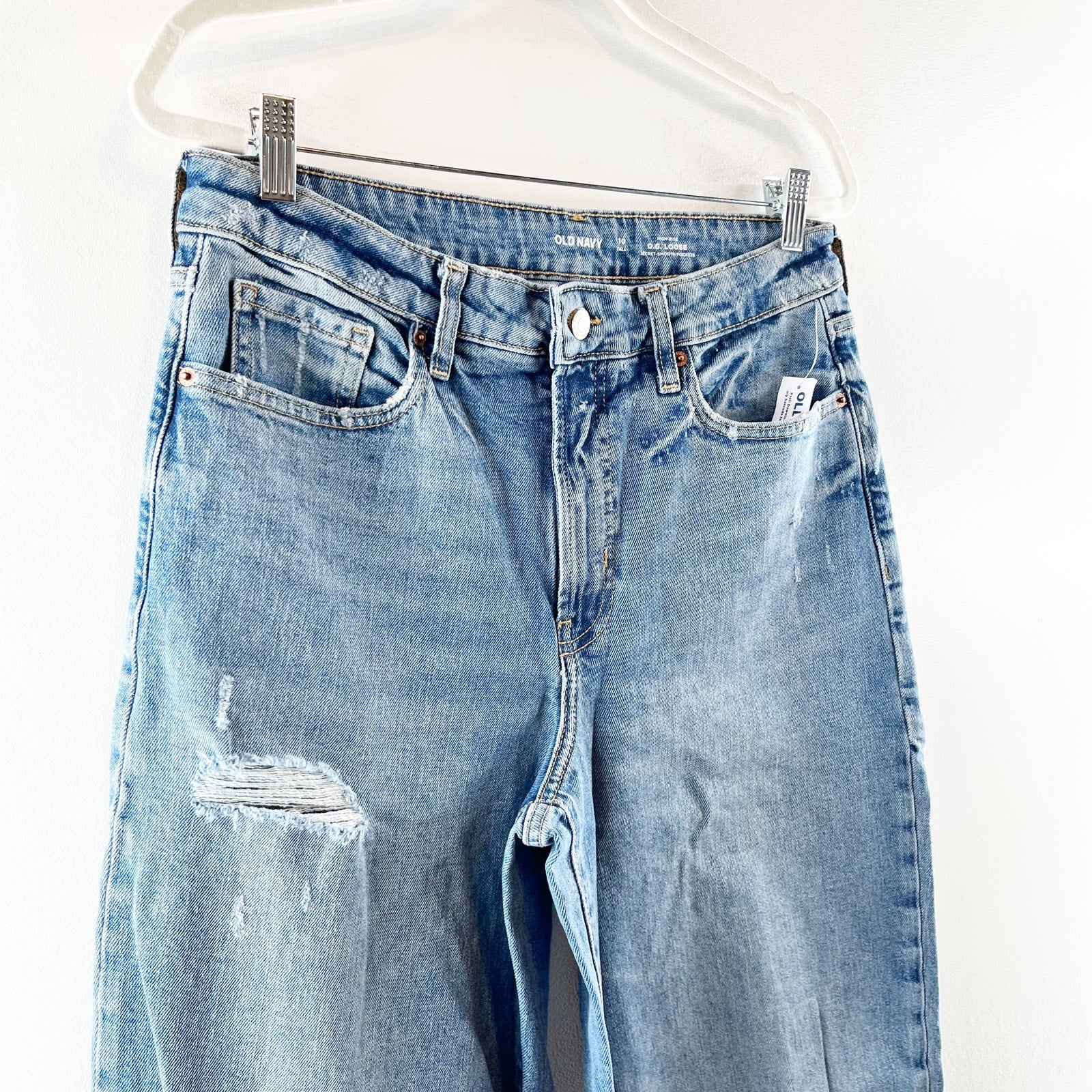 Old Navy High Rise Loose OG Secret Smooth Pockets Ripped Jeans Blue 10 Tall