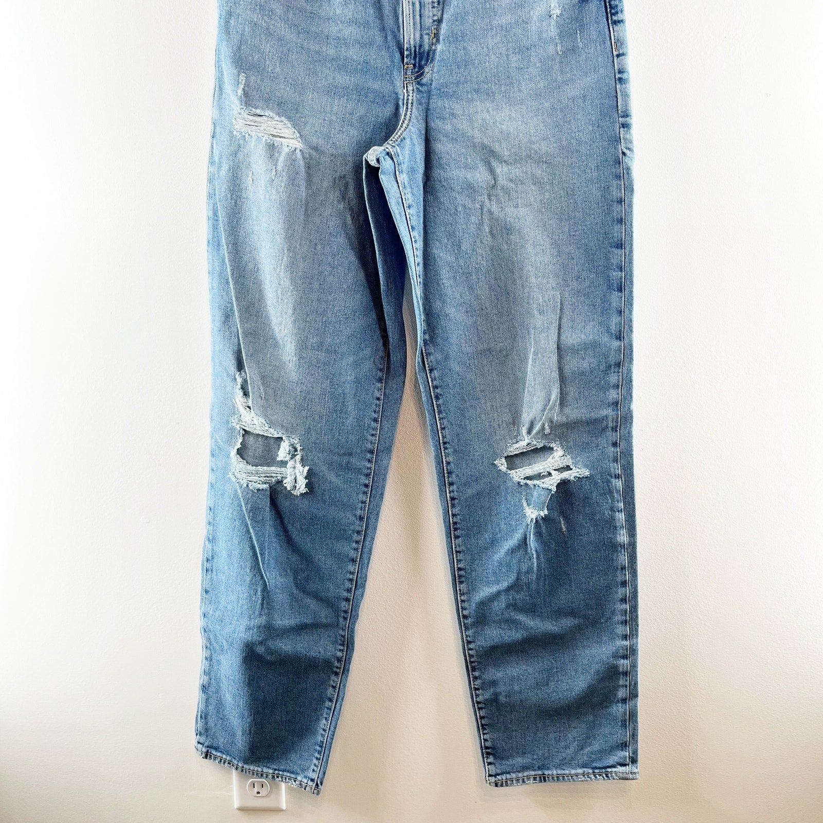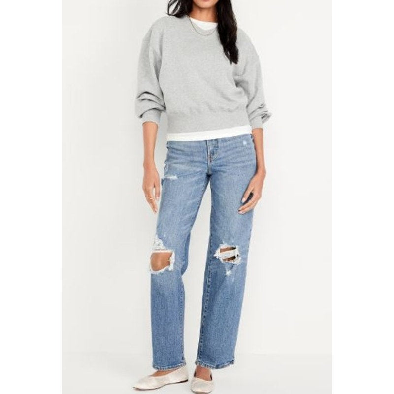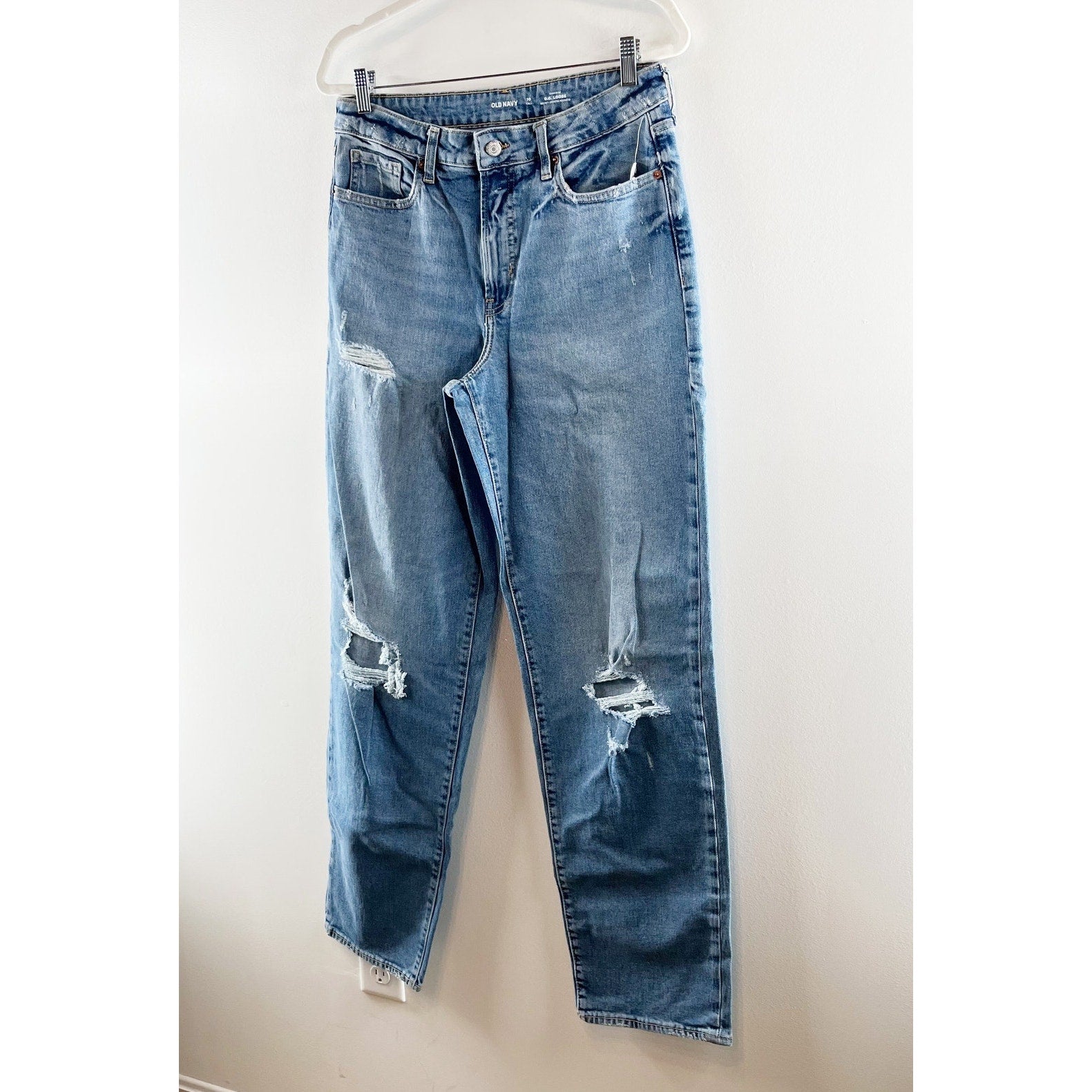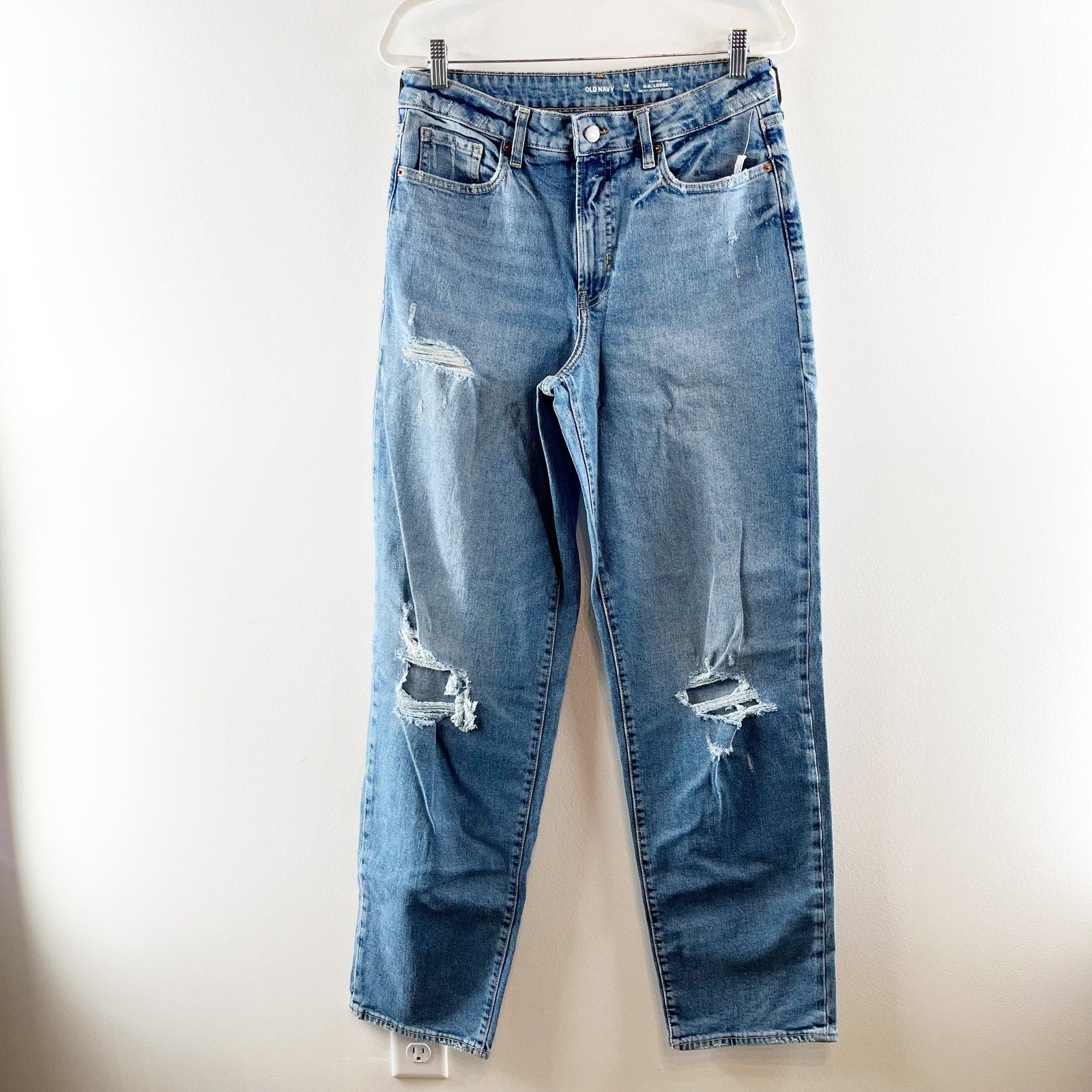 Old Navy High Rise Loose OG Secret Smooth Pockets Ripped Jeans Blue 10 Tall
