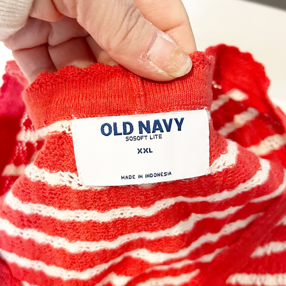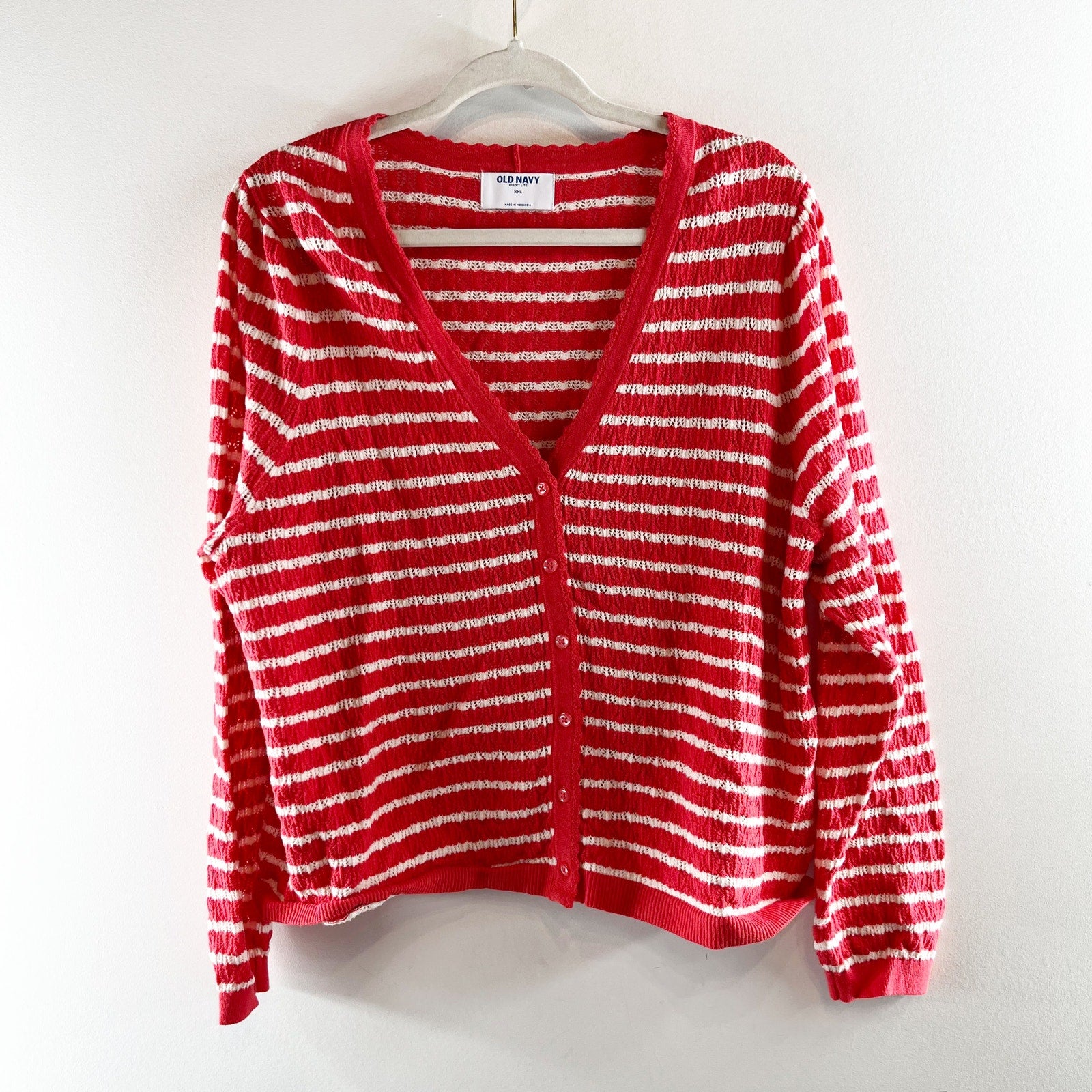 Old Navy So Soft Lite Striped V Neck Long Sleeve Cardigan Sweater Red White XXL