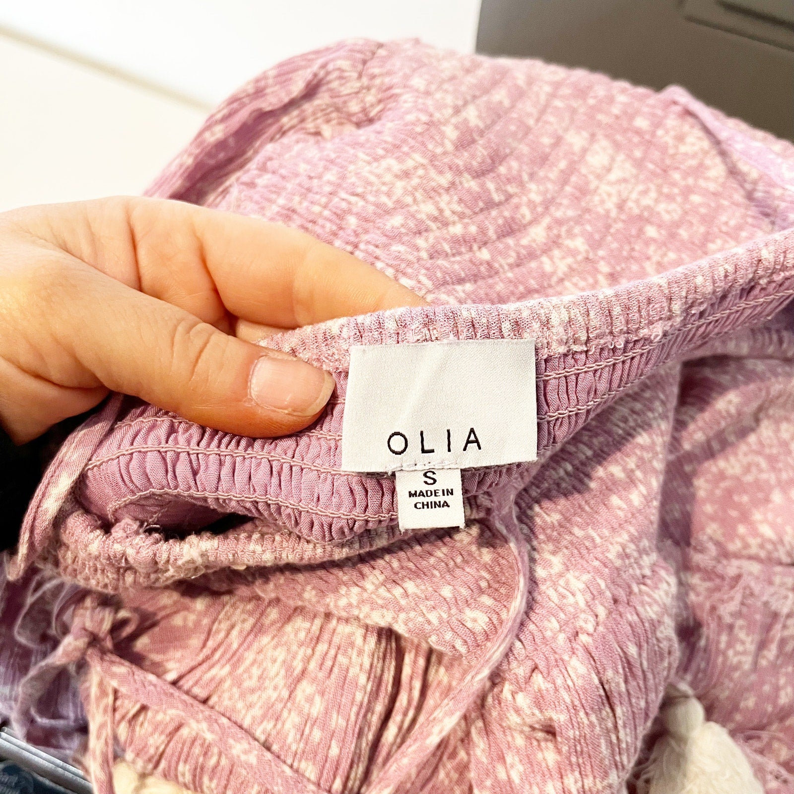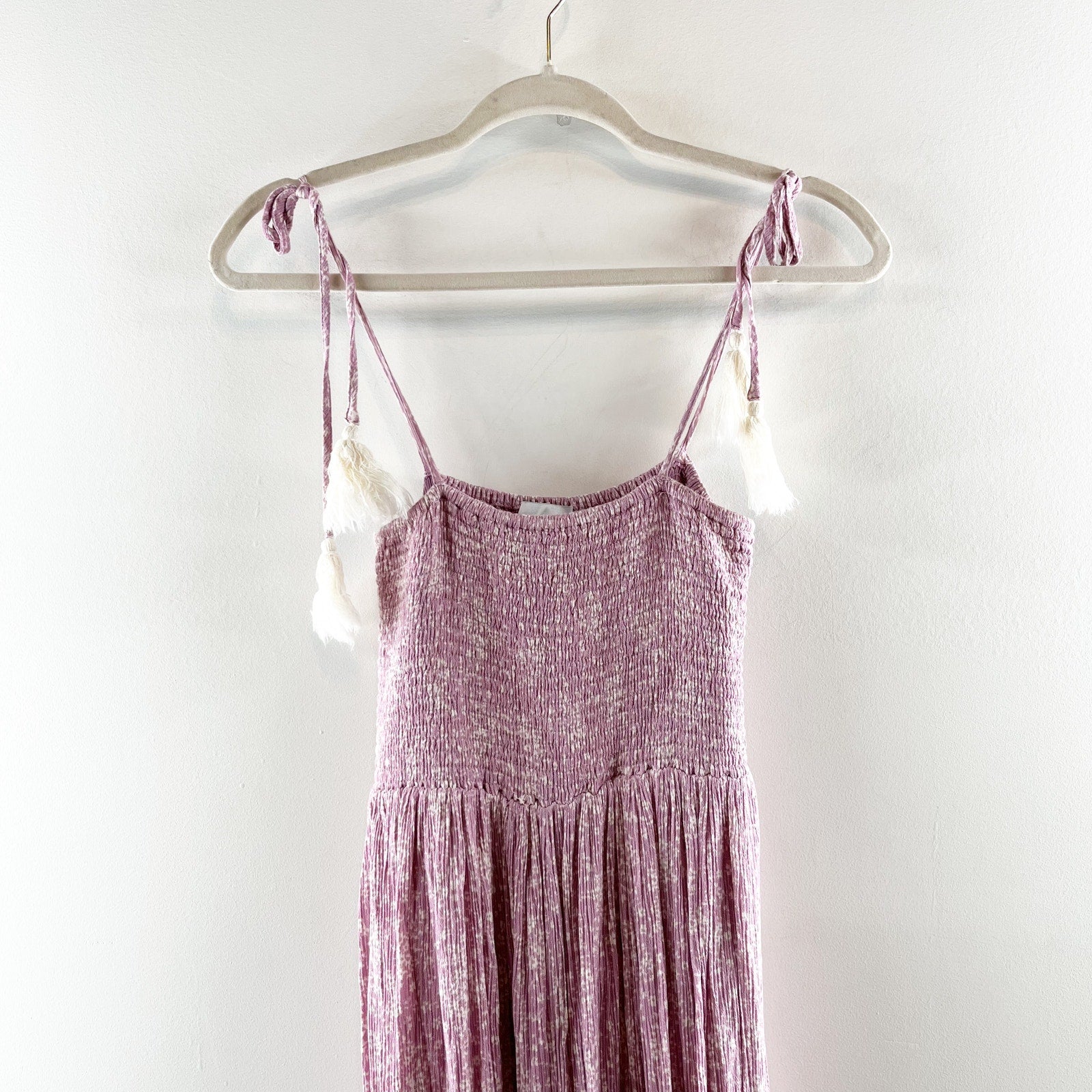 OLIA Smocked Tie Strap Printed Maxi Dress Sundress Lavender Purple Small