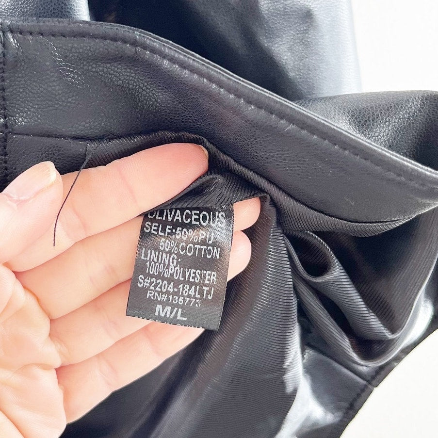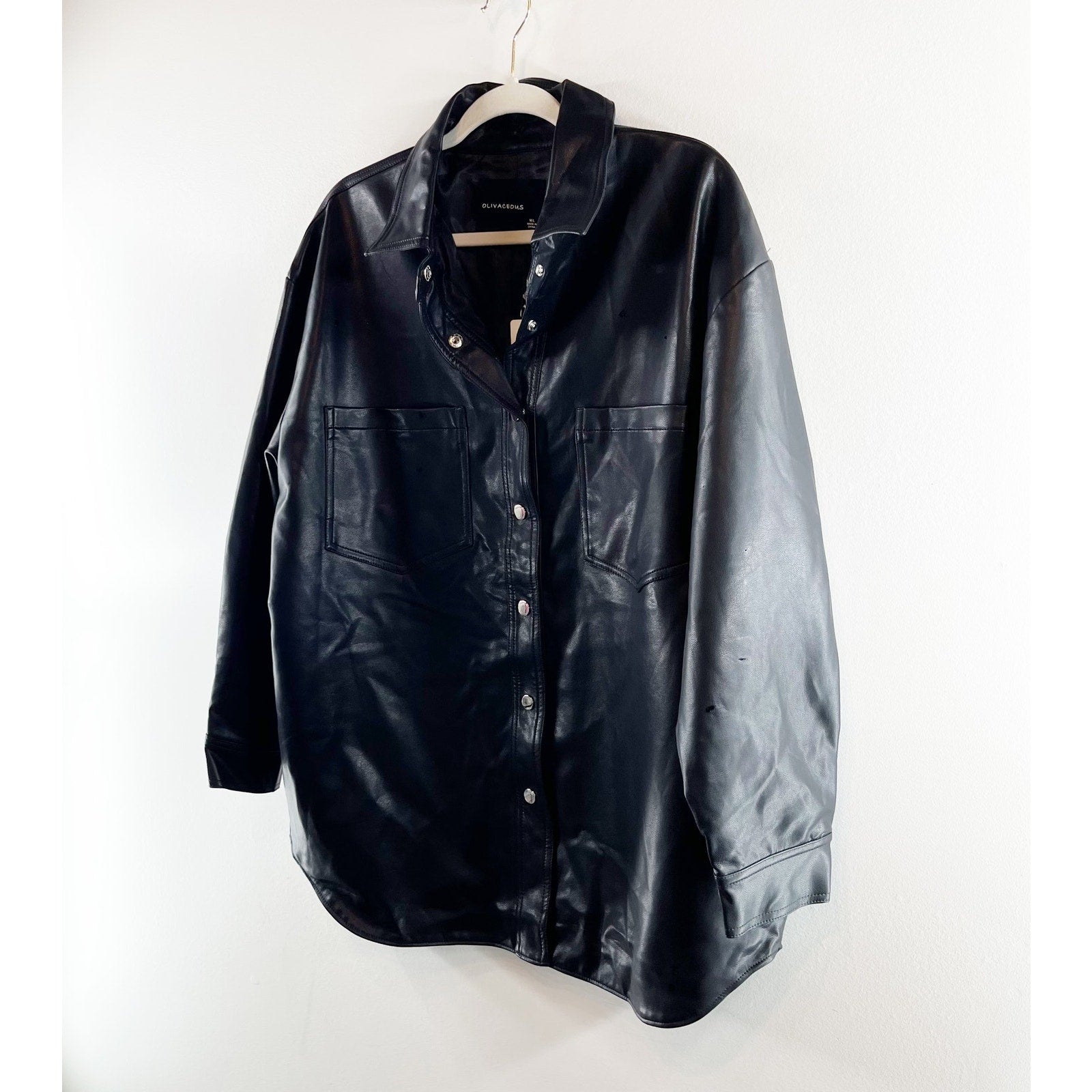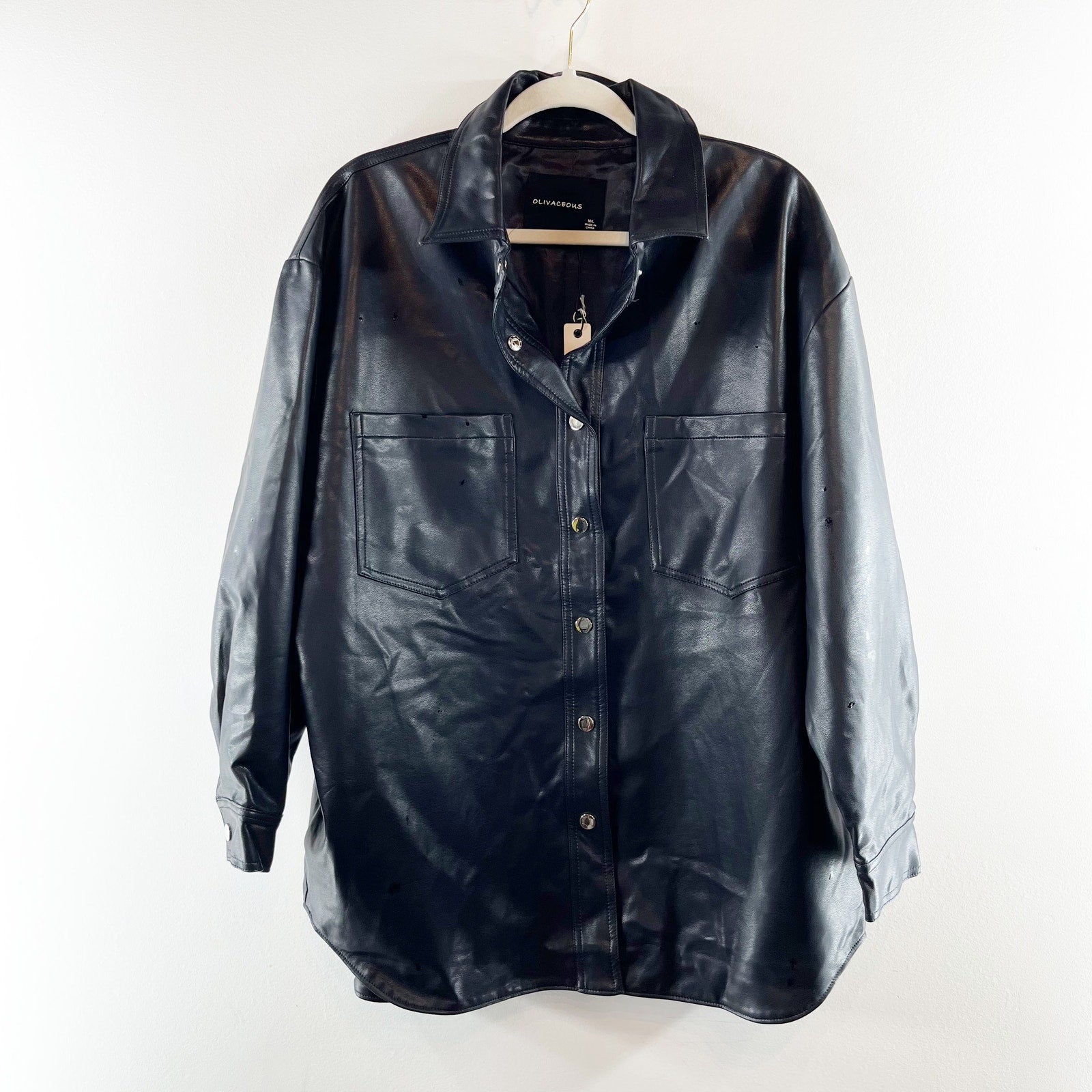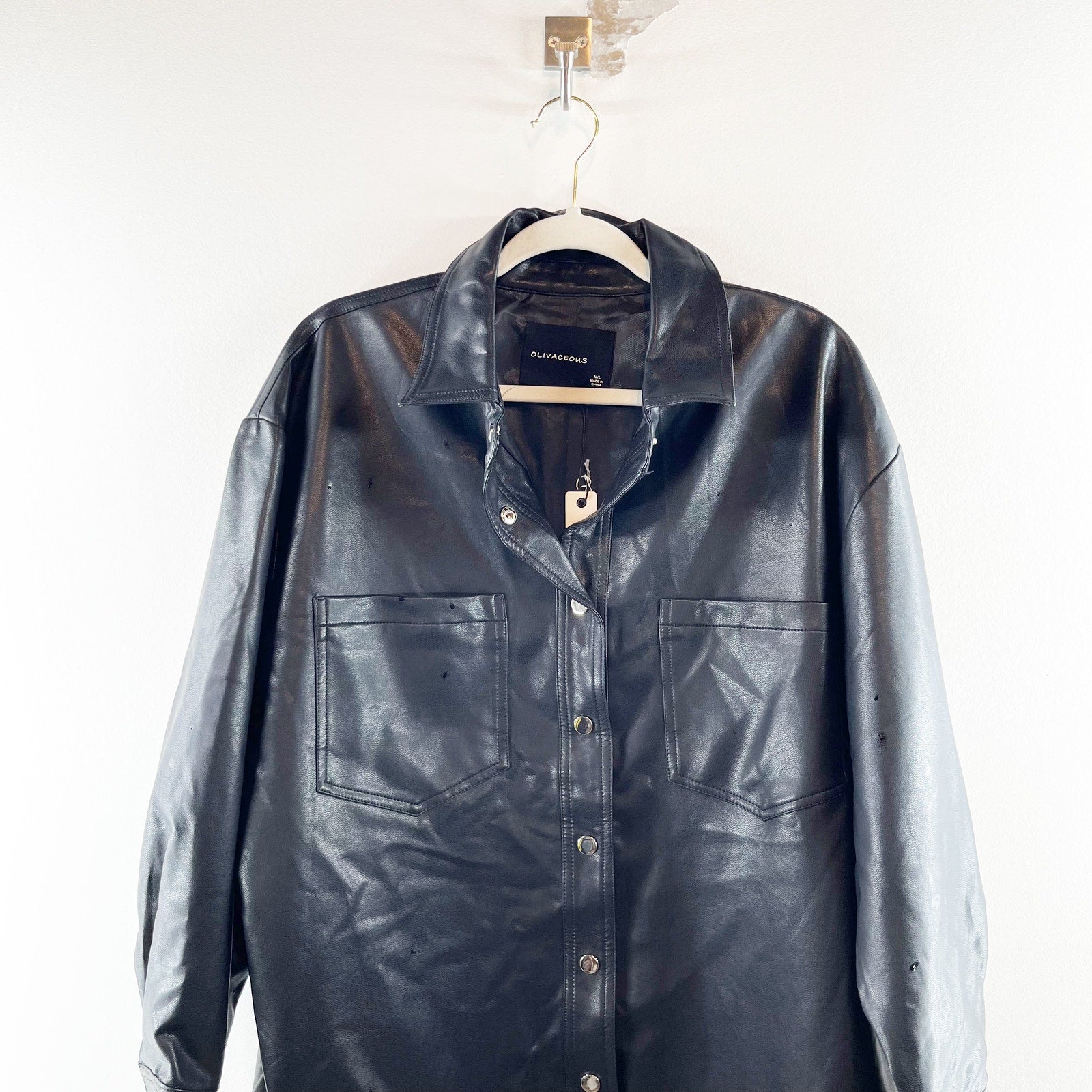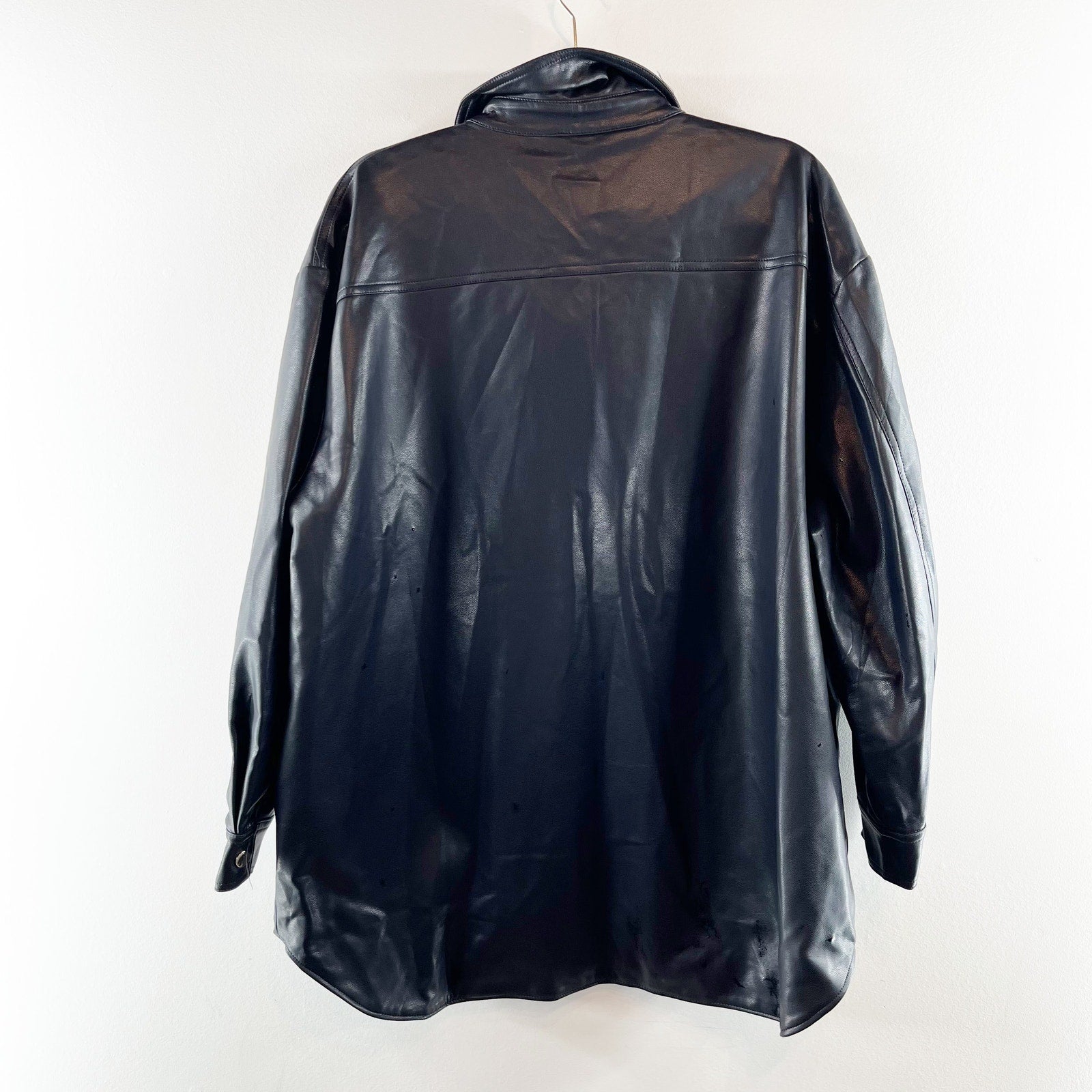 Olivaceous Faux Leather Snap Button Down Shirt Oversized Black Medium / Large